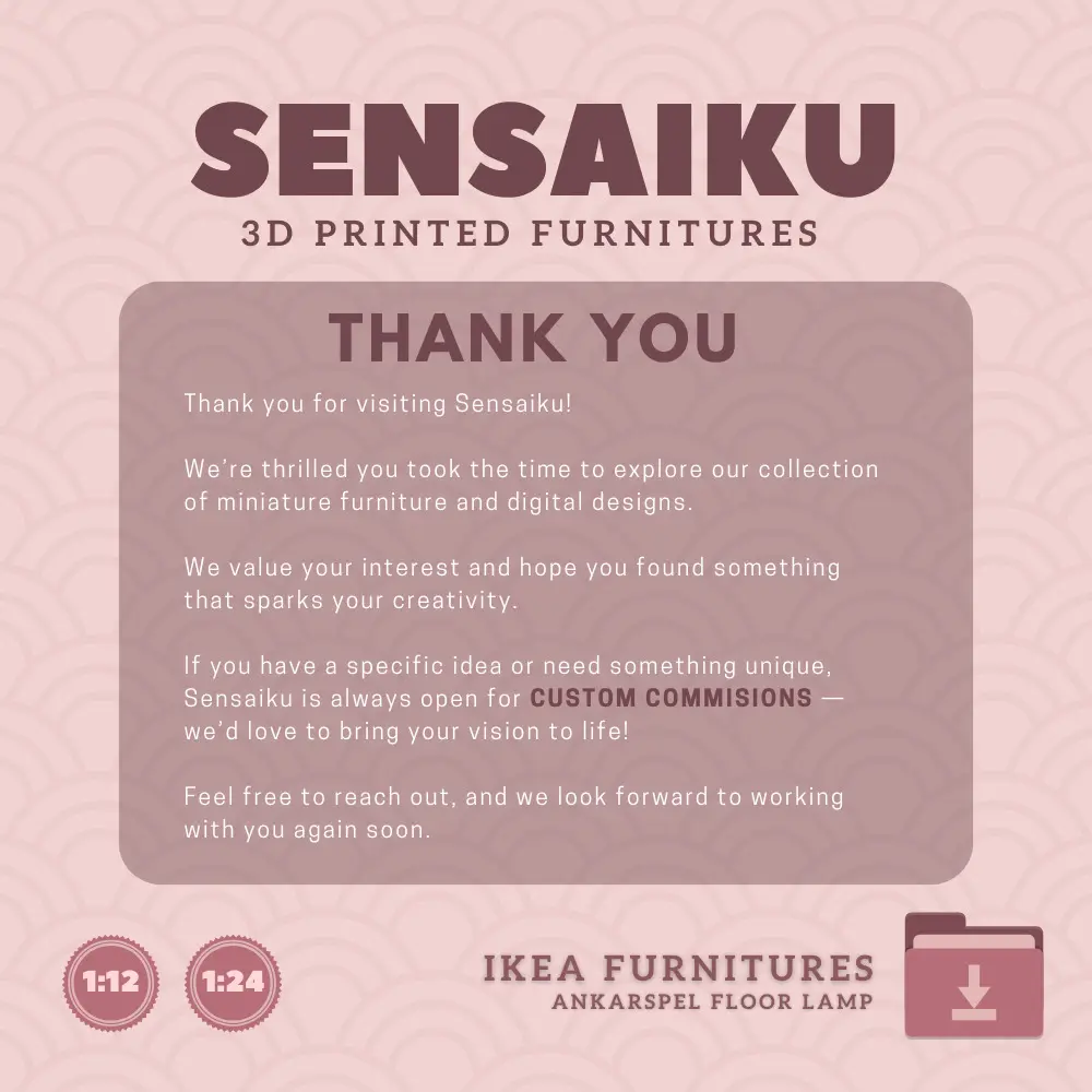 The ANKARSPEL lamp’s adaptation into 3D-printed miniatures showcases its timeless design and versatility. By utilizing 3D print files, hobbyists and collectors can explore new ways to celebrate IKEA’s innovative designs. Whether as a functional addition to a dollhouse scene or an eye-catching detail in a mini diorama, the miniature ANKARSPEL floor reading lamp exemplifies the perfect fusion of form and function. Its transformation from full-sized lighting to miniature artistry demonstrates the enduring appeal of thoughtful, well-crafted design.