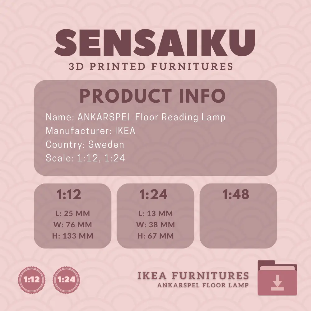 Name: ANKARSPEL Floor Reading LampManufacturer - IKEARecommended Printer: Resin 3d PrinterSeries: Furniture Designers SeriesScale: 1:12, 1:24