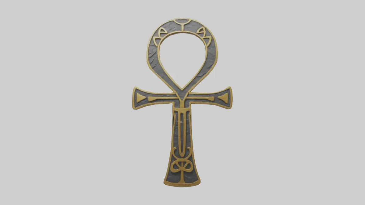 Ankh-Symbol, 3D-Modell, altes ägyptisches Symbol, Leben und Unsterblichkeit, historische Projekte, kulturelle Assets, dekorative Zwecke, hochwertige Texturen, 3D-Spieldesign, Simulationsasset, altes Ägypten, symbolisches Modell, realistische Details, Umgebungsdesign