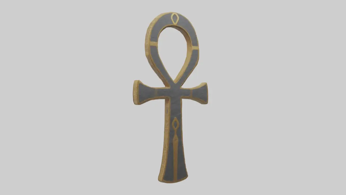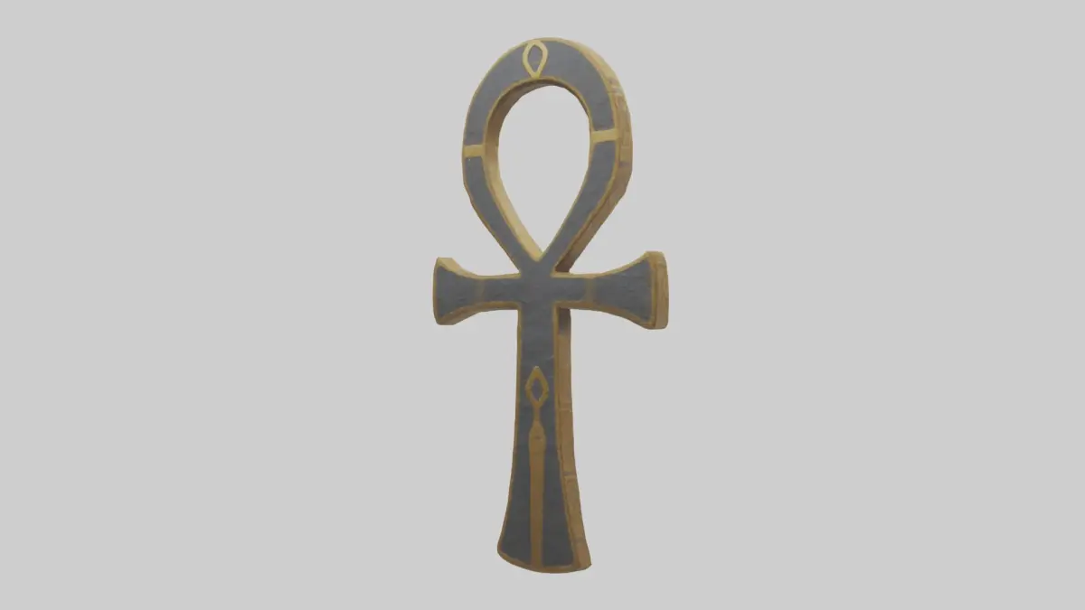 Ankh sembolü, 3D model, antik Mısır sembolü, yaşam ve ölümsüzlük, tarihsel projeler, kültürel varlıklar, dekoratif amaçlar, yüksek kaliteli dokular, 3D oyun tasarımı, simülasyon varlığı, antik Mısır, sembolik model, gerçekçi detaylar, çevre tasarımı