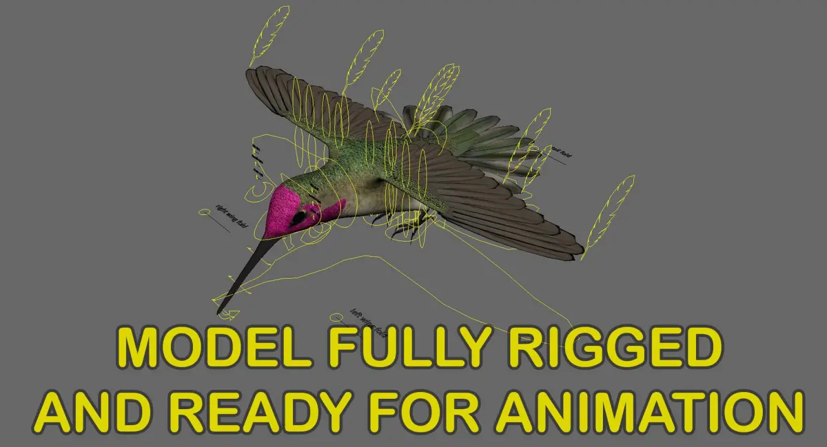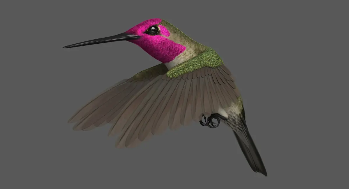 Animated 3D model of Anna's Hummingbird (Calypte Anna), created in Maya 2016.