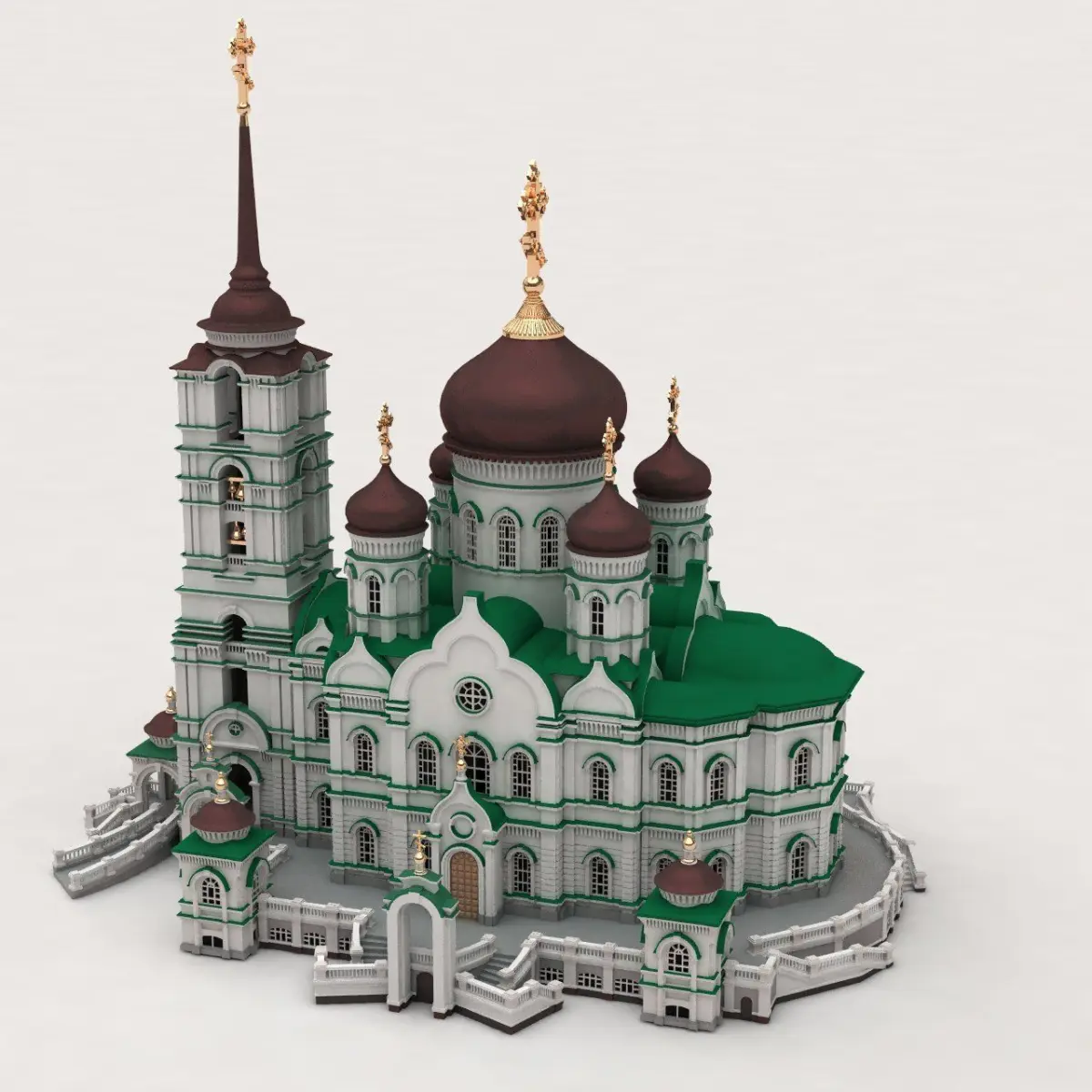 The existing five-domed building of the cathedral with an attached bell tower was erected between 1998 and 2009. It was patterned after St. Vladimir's Cathedral, built in the late 19th century in a Russo-Byzantine style harking back to the works of Konstantin Thon and demolished by the Bolsheviks in the 20th century.