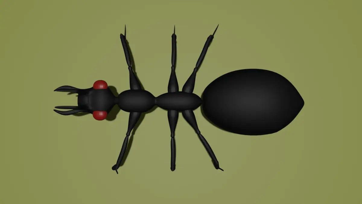 the ant is low poly and has bones. there is material but simple Made in Blendore 3.0