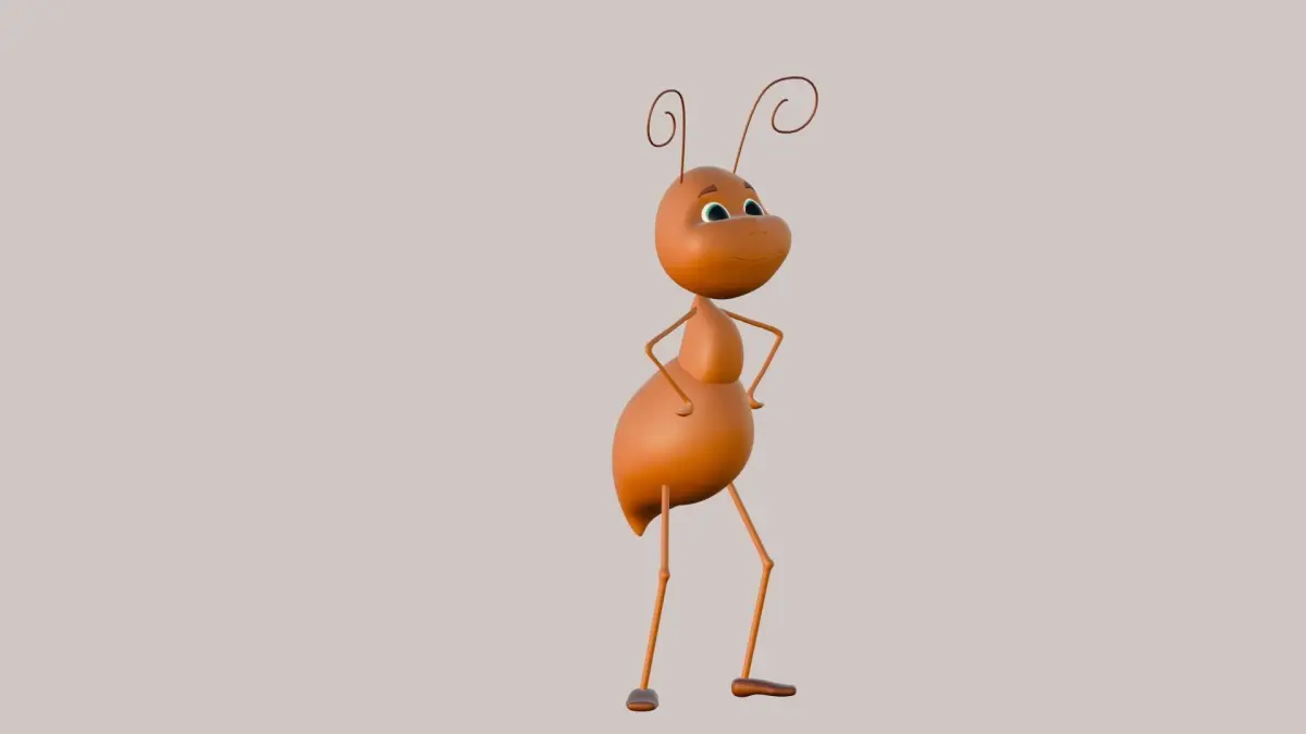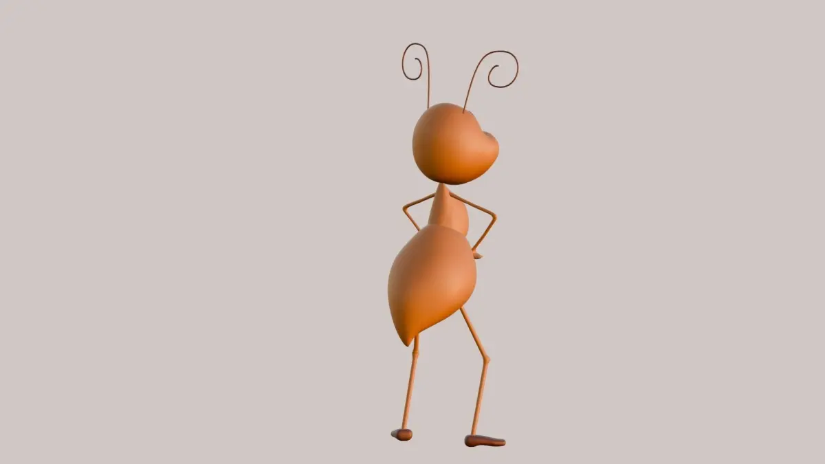 3D model of an ant character in a cartoon style, made in Blender 4.0. High poly model.