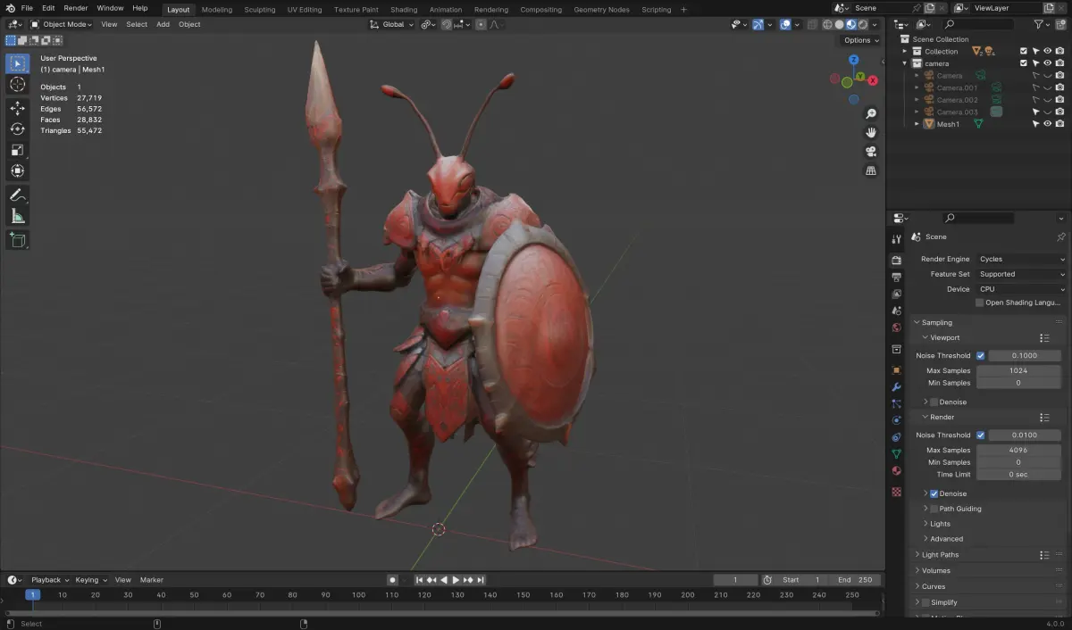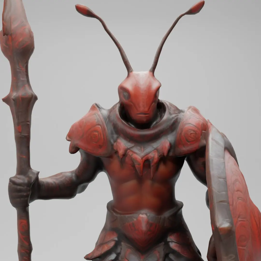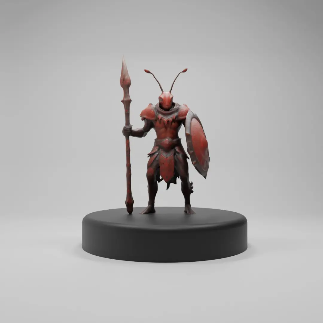 Dive into a world of creativity with this intricately designed Ant Warrior 3D Model, perfect for fantasy or sci-fi game development, static renders, or 3D printing projects. This unique character blends insect-inspired design with warrior aesthetics, featuring a shield and spear for a bold, battle-ready look.