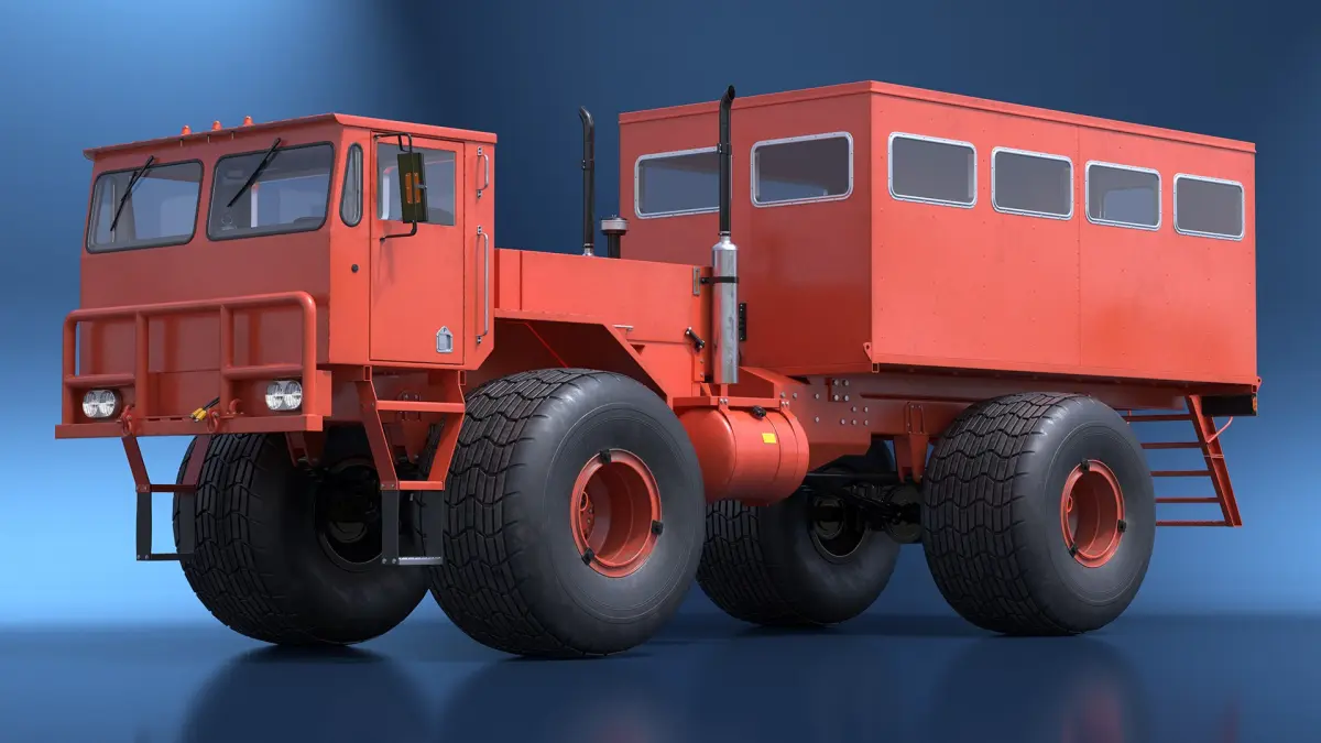 Antarctica Delta Vehicle is a three-dimensional model of all-terrain passenger truck specifically designed as a robust wheeled snow vehicle for polar climates, suitable for Arctic and Antarctic land exploration.
