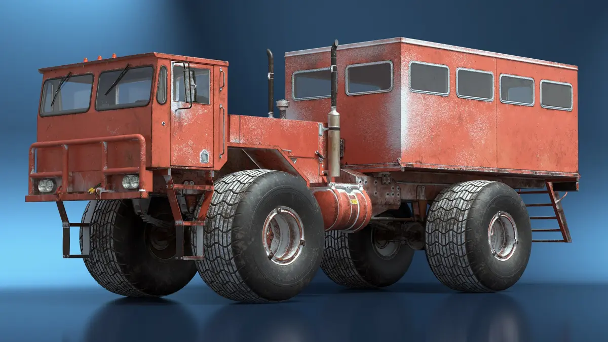 Antarctica Snow Vehicle is a three-dimensional model of all-terrain passenger truck specifically designed as a robust wheeled snow vehicle for polar climates, suitable for Arctic and Antarctic land exploration.