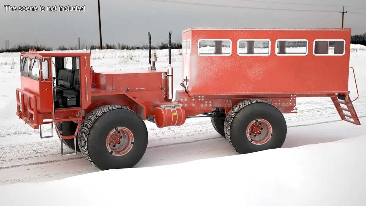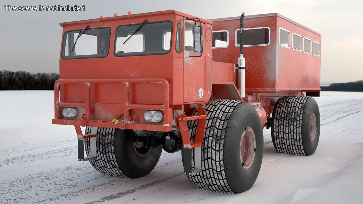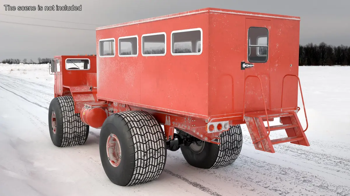 Antarctica Truck Rigged is a three-dimensional model of all-terrain passenger truck specifically designed as a robust wheeled snow vehicle for polar climates, suitable for Arctic and Antarctic land exploration.