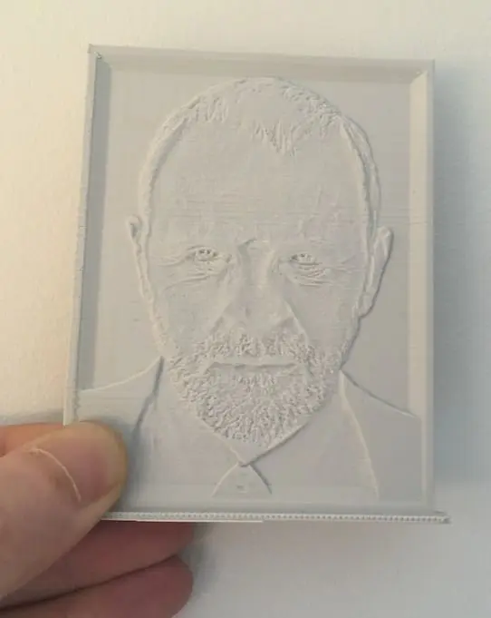 FREE printable picture of the famous actor Anthony Hopkins ! Easy to print in Fdm or Sla 3D printers You can create a picture in a frame with some backlight , a lamp or simply stick it on a window ald let the sun do the job. The dimensions are 4 x 100 x 129 mm ... you can scale it as you prefer without loosing quality. Hope you enjoy ... have fun printing :)