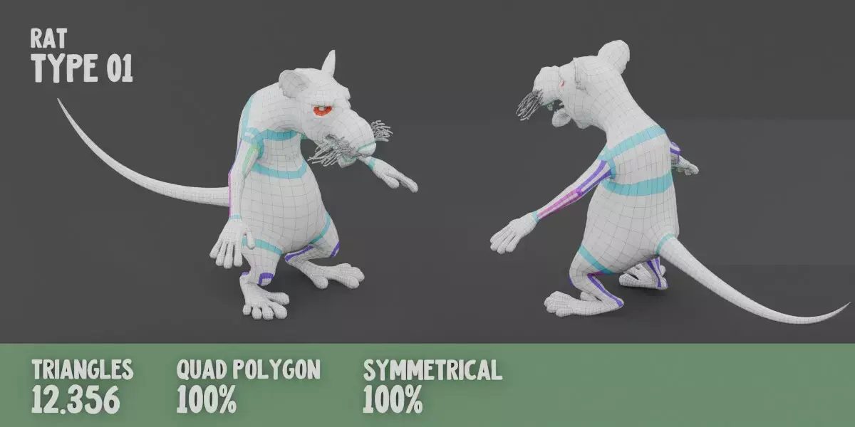 The characters of our BaseMeshes combine animal traits with human characteristics, which is why I call them Anthropomorphic Base Meshes — ideal for creative, lively character designs.Thanks to the pre-made shapes, the BaseMeshes provide you with a quick foundation for 3D modeling. You can get started right away and focus on the details without starting from scratch. This saves you time and increases efficiency in your workflow.The Rat Collection includes 5 BaseMeshes (Blend and FBX format)