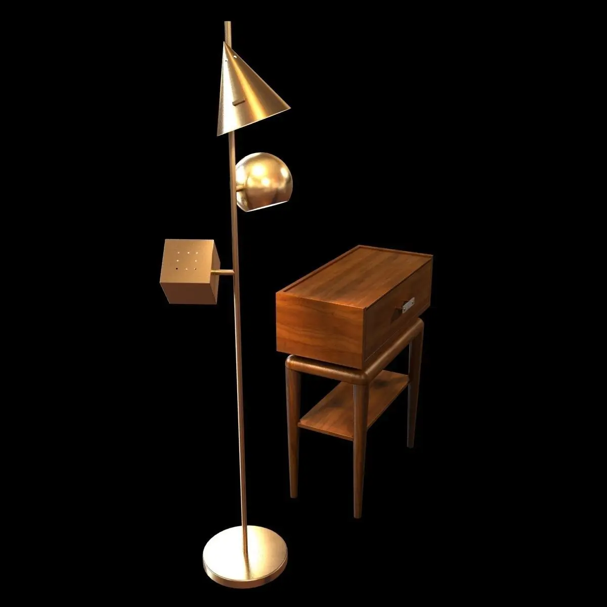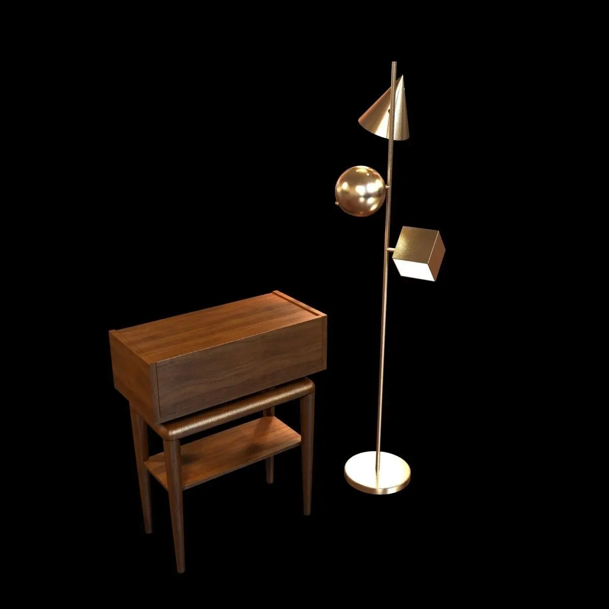 This is high poly nightstand and floor lightRendered in vray.Stack not collapsed.Textures included.Model tested checkmate light program.3ds, fbx, obj files exported without meshsmooth modifier.