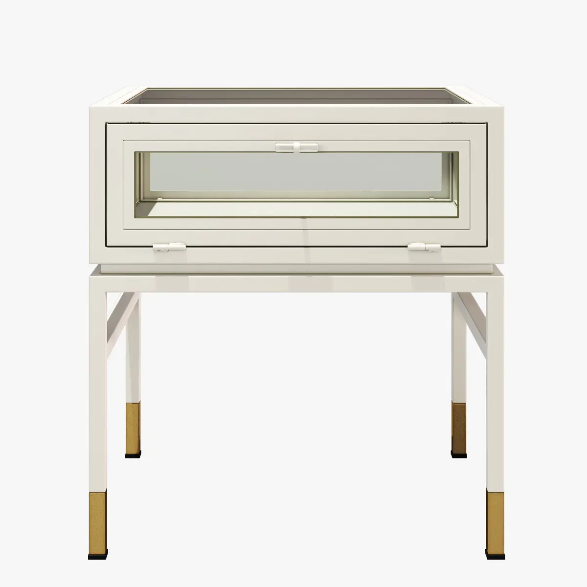 Featuring a faceted glass storage compartment with a pull-down door, this contemporary table is equally decorative and functional, adding an air of refined elegance to your space.