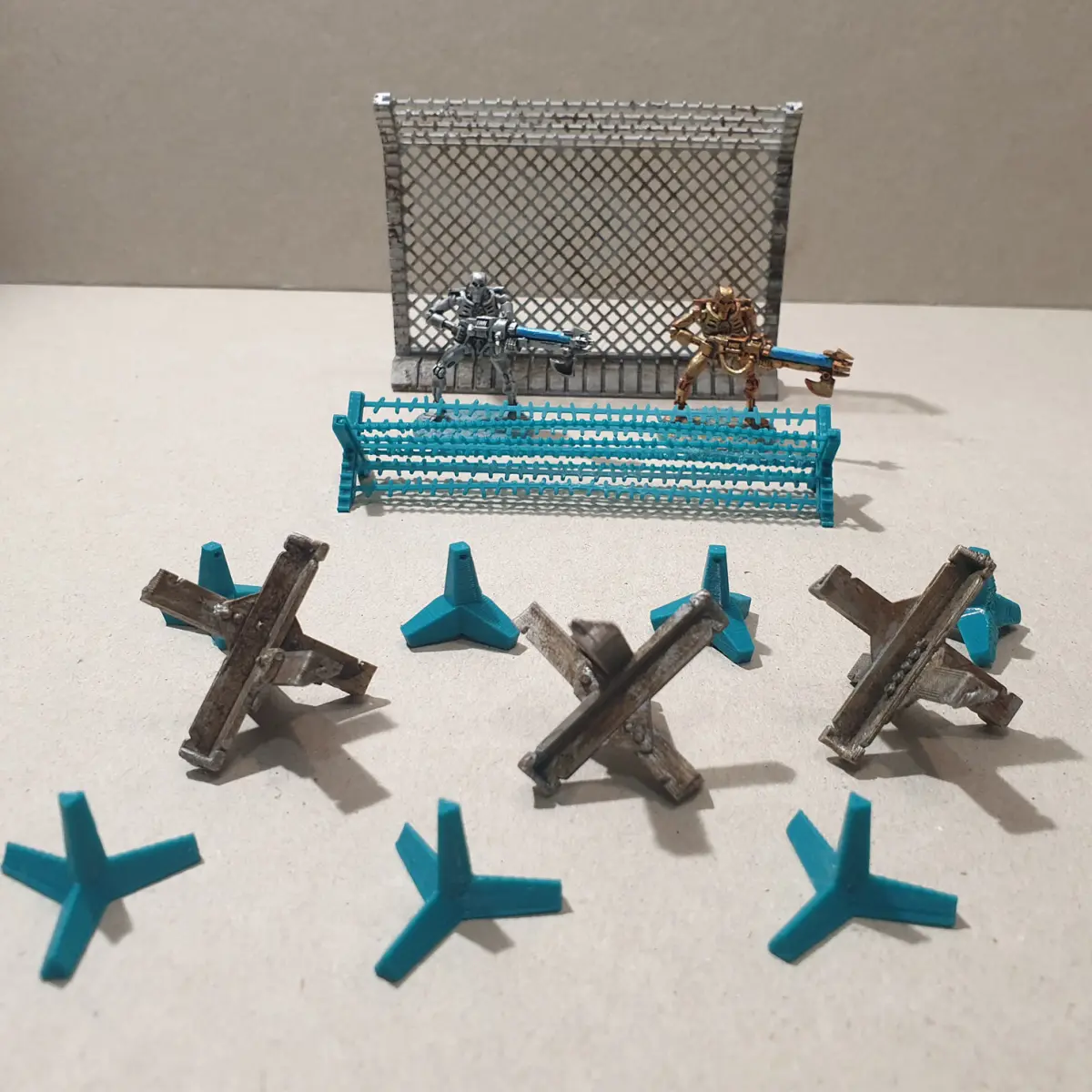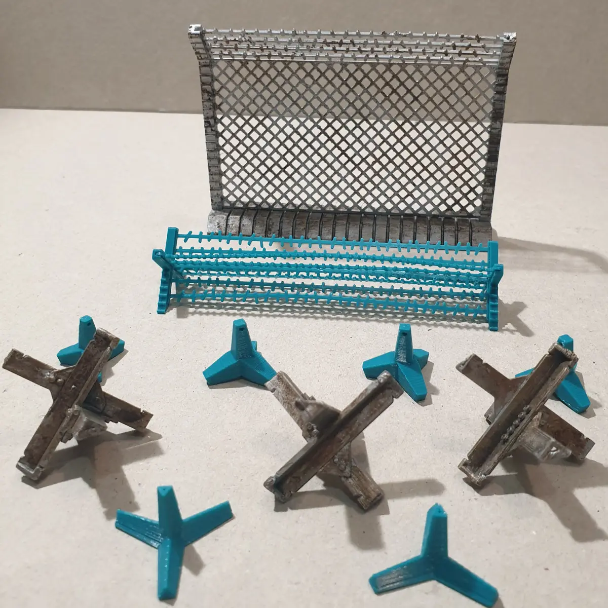 today I have prepared for you a package for your military wargames.This pack includes a barbed wire fence, two types of tank obstacles, and one obstacle called a hedgehog and one anti-infantry barbed wire obstacle.All are in 28/35mm size. But it is not a problem to increase these obstacles.Printing is absolutely simple, without supports. I printed everything from PLA, simple setup for detailed printing.