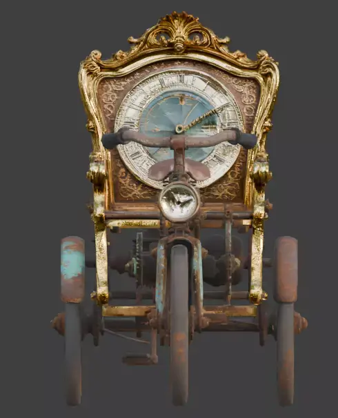 Unique Steampunk Geometry: Combines a classic tricycle silhouette with Victorian furniture and horological components, creating a credible yet fantastical industrial design.
