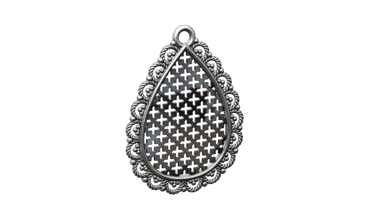 Variation of almond shaped pendant or earrings plus antique and traditional motifs.