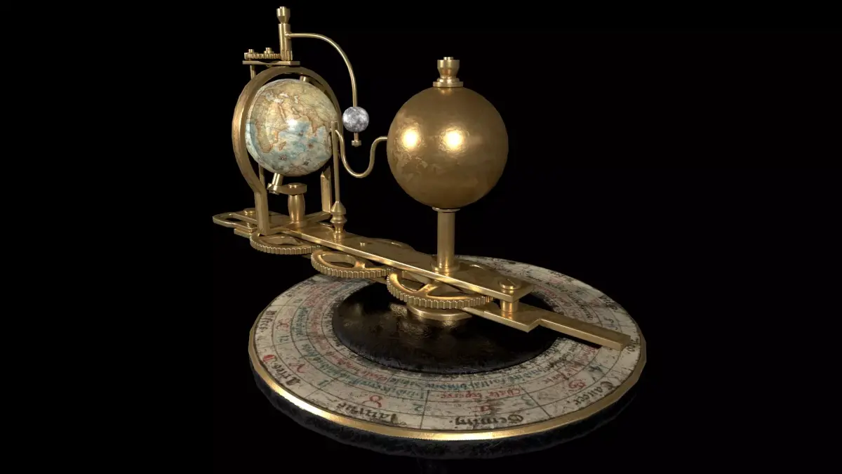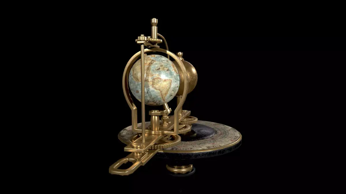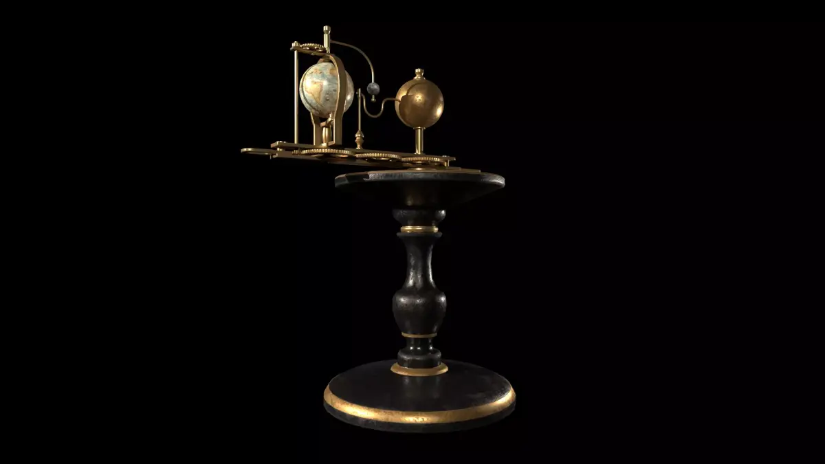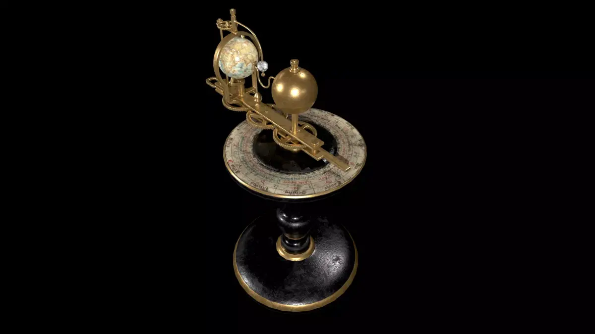 High-quality 3D model of an antique astronomical tellurium featuring a detailed zodiac dial and mechanical structure.Designed as a visually rich yet optimized asset, suitable for real-time applications, cinematic scenes, and historical or scientific environments.