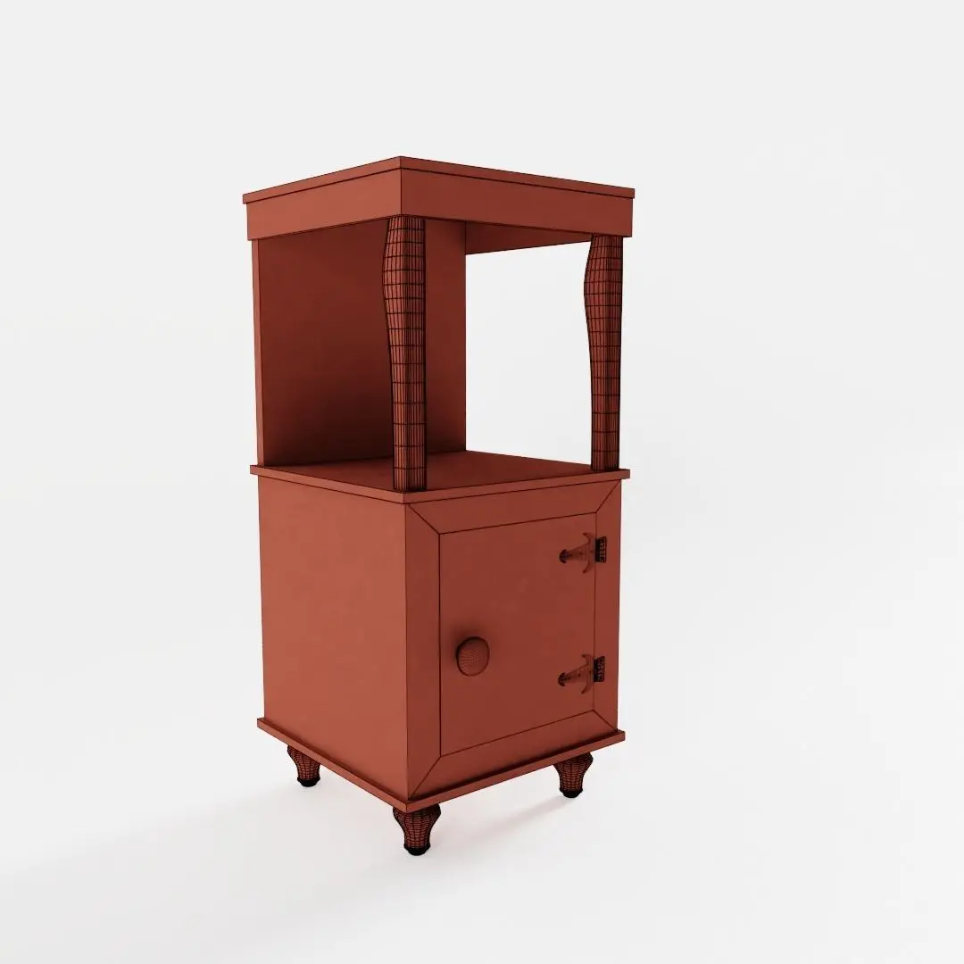 The model has real world scale (approximately 89 cm in height and 40 cm in depth and length). It consists of two seperate, but grouped and parented, meshes, to make it easier to open the door, if needed.