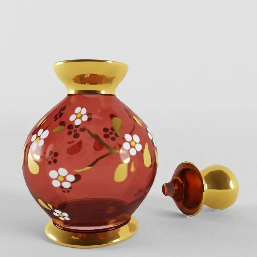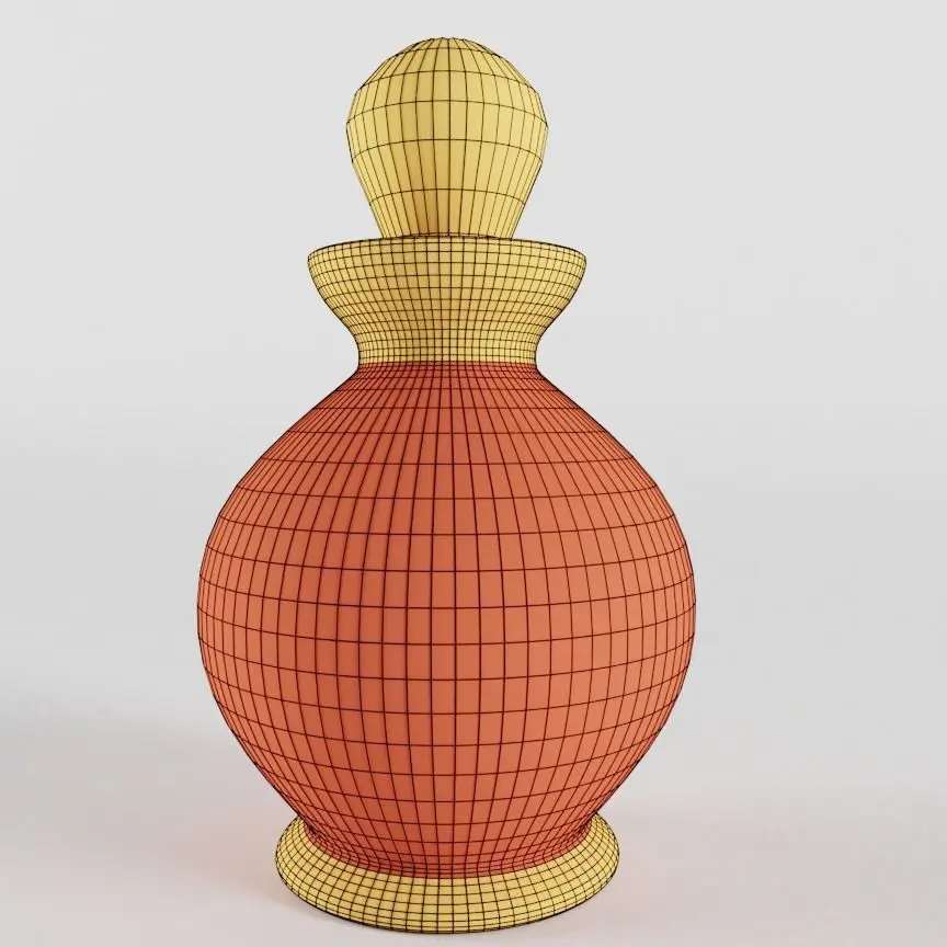 This is a model of a perfume bottle from the 1900s in real world scale (approximately 13.5cm in height). It consists of two seperate, but grouped objects: the stopper and the bottle itself.