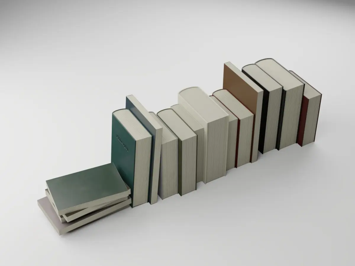 These are not real released books but titles I came up with myself. 18 unique books with different sizes and colors and textures. This is a must have props asset for interior renders.