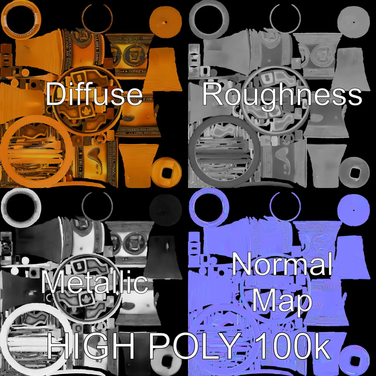 This Antique Brass Bell Model Pack offers high-quality 3D models suitable for various applications. With three levels of detail, it caters to mobile, environmental, and high-detail production renderings, providing flexibility for game engines like Unity and Unreal, as well as for interactive presentations. The models feature PBR, Diffuse, NormalMap, and reflection/roughness/metallic textures, all in 4096x4096 resolution, ensuring compatibility with all modern rendering engines. Each model is meticulously unwrapped with no overlapping UVs. Ideal for historical visualizations, period film productions, and antique digital replicas, this model delivers both aesthetic appeal and technical precision. The first image is the reference used for creating the 3D model. It is important to carefully evaluate the quality of the model by examining the preview images that display the topology and polygonal mesh. These previews (WIRE and WEB 3D Preview) clearly demonstrate how accurately the model matches the original reference and how well the geometry has been executed. If you enjoy this model, please like and leave a comment!