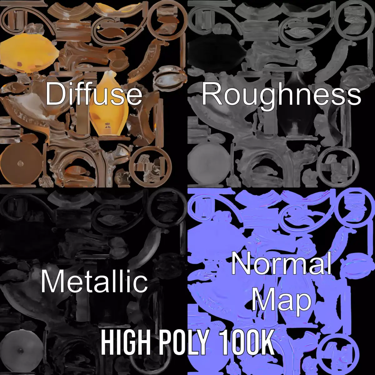 This Antique Brass Wall Sconce model features an elegant design with intricate floral patterns, making it ideal for classic and vintage-themed interiors. Each model has 3 levels of detail: low-poly (1000 triangles for mobile), middle-poly (10,000 triangles for environment), and high-poly (100,000 triangles), which allows for use in production rendering (3ds Max, Maya, Cinema 4D, Blender, Vray/Corona/Cycles, and others), game engines (Unity and Unreal compatible), and interactive presentations, providing a choice of detail based on the LOD System principle. Its textures are PBR, Diffuse, NormalMap, and reflection/roughness/metallic, suitable for any modern rendering engine. All models are accurately unwrapped with no overlapping UVs. Perfect for historical scenes, architectural visualization, or any project requiring a touch of elegance. All textures are 4096*4096 in size. Please like and leave a comment if you enjoyed the model.