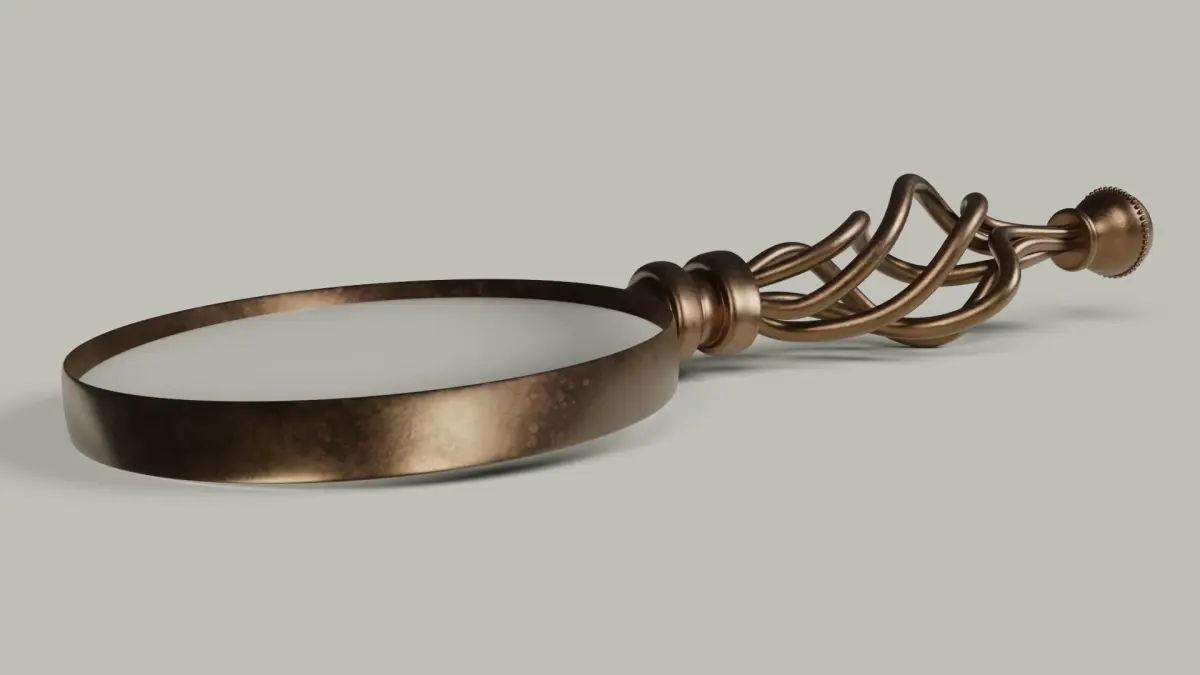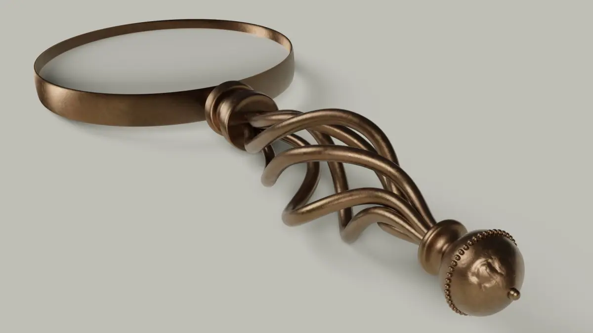 This antique bronze magnifying glass is a realistic and detailed 3D model with dents and scratches. The materials and textures are included. Well suited for close up renderings.