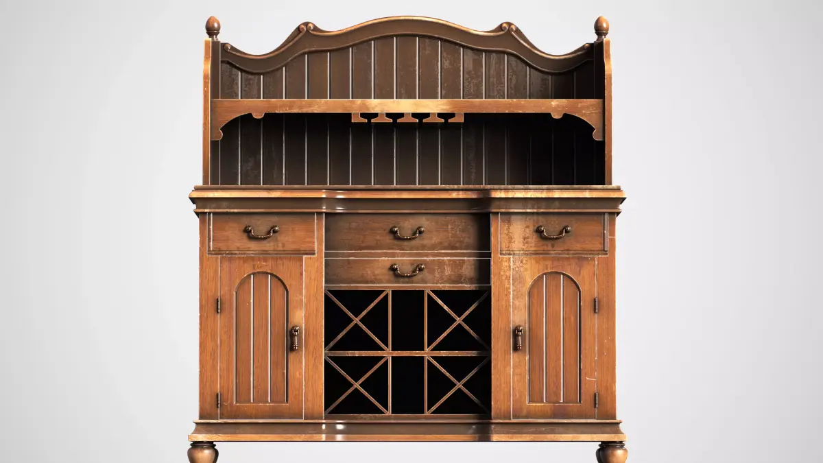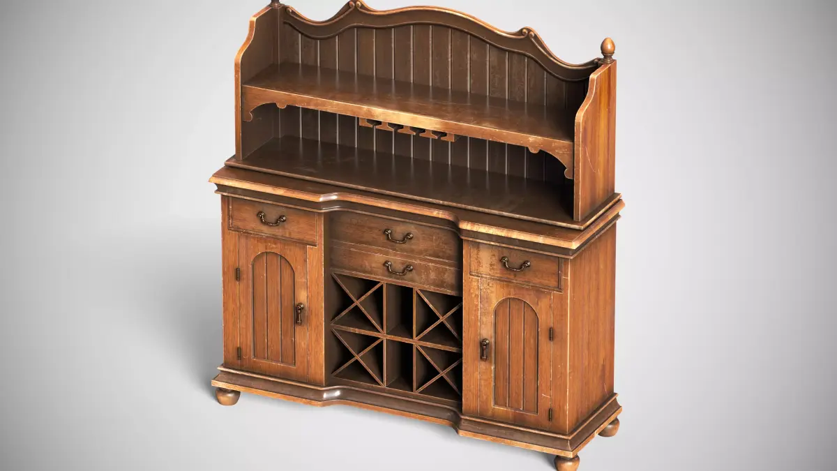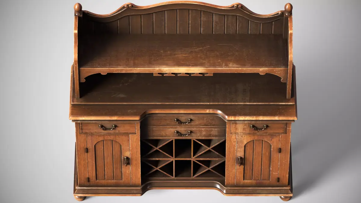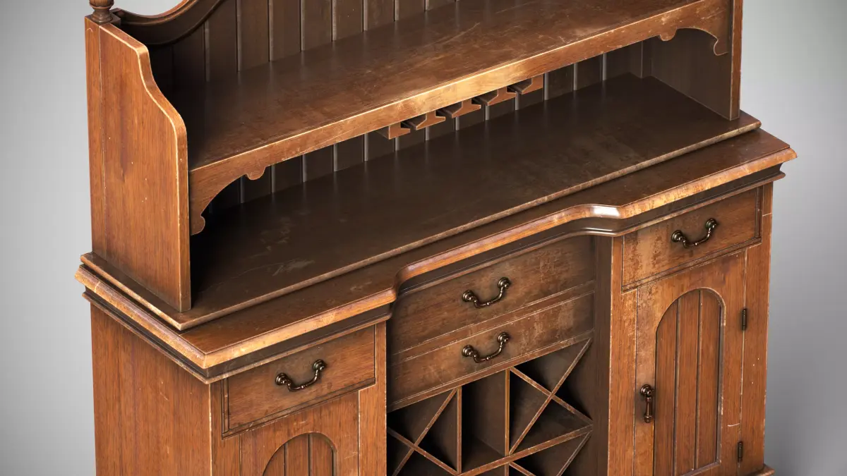 Old Bureau, Cabinet. low poligonal 3D model with texture and UV mapping.