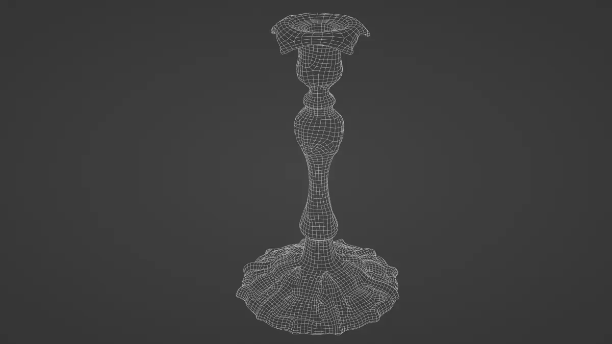 Antique metal candle stic. Stands 27cm tall. Features a clean quadbased mesh, low poly (7671 faces) with Normal map baked from high poly model.