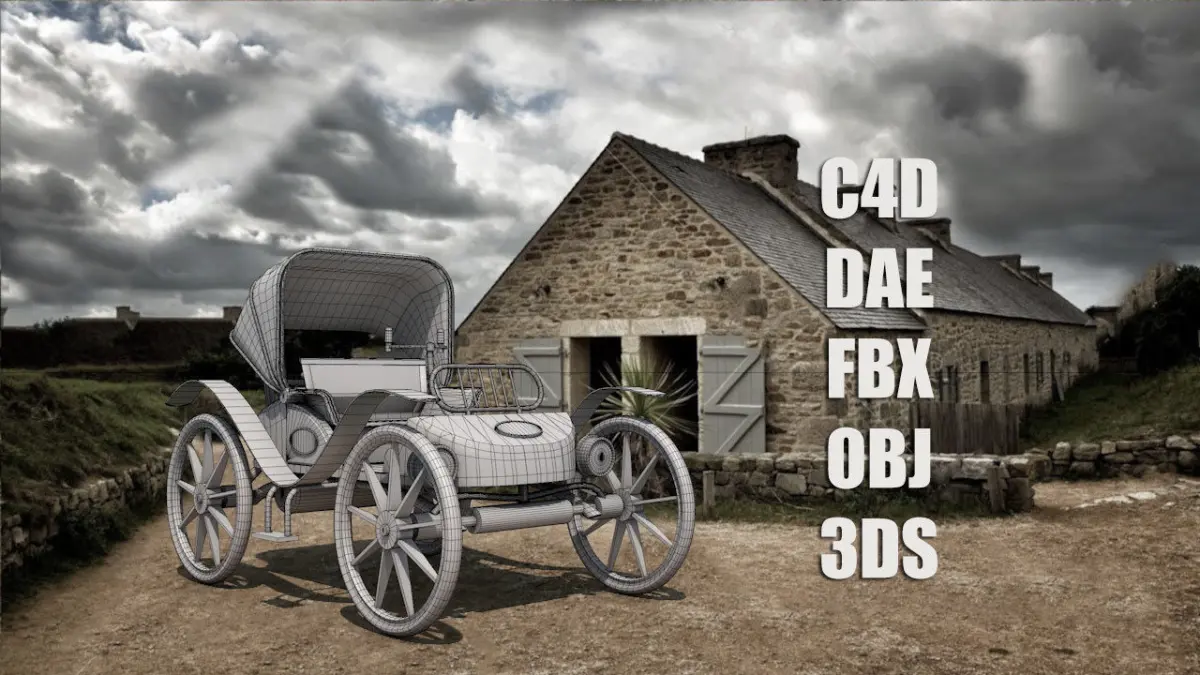 High quality antique car model. Copy color channel to bump channel for better renders. C4D format also has bump channels.