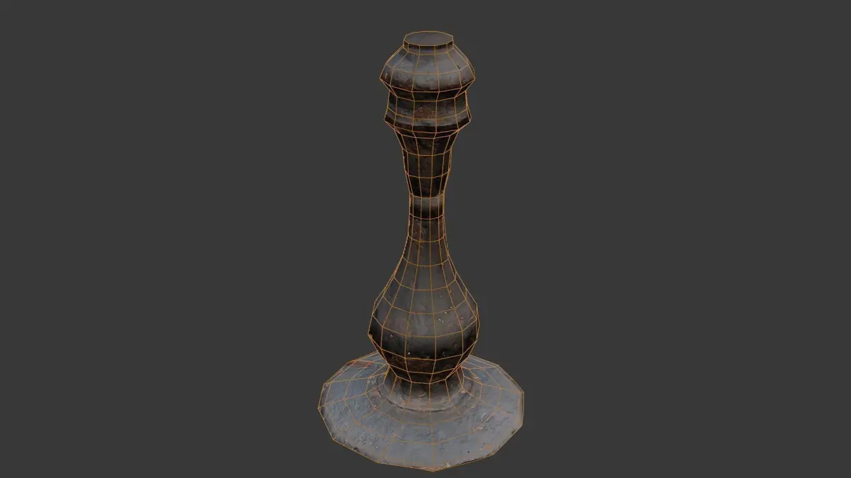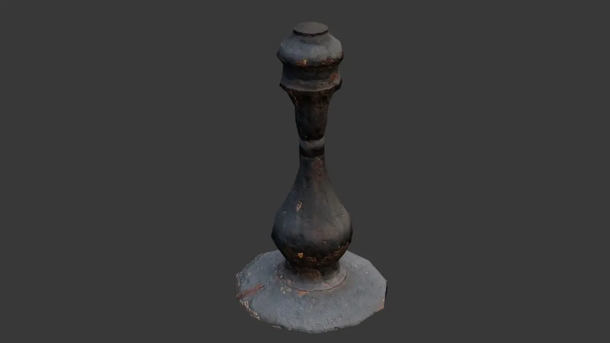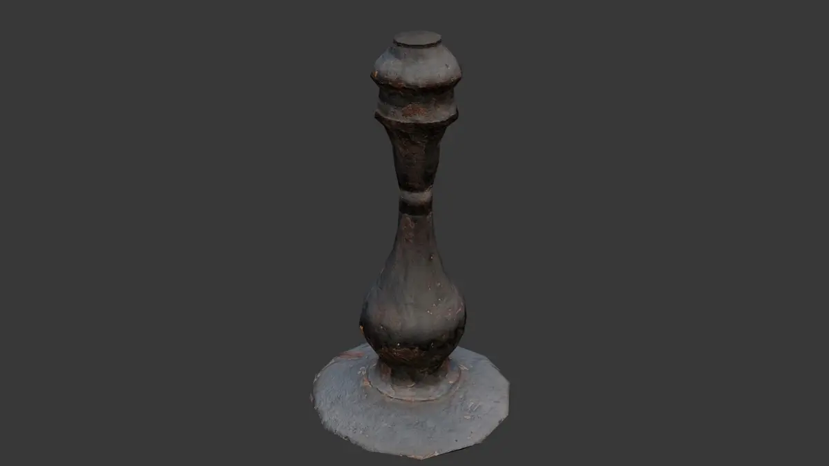 A highly detailed 3D scan of an antique cast iron baluster with realistic rust, chipped paint, and weathered details. This model is perfect for use in historical reconstructions, architectural visualization, games, and cinematic environments.
