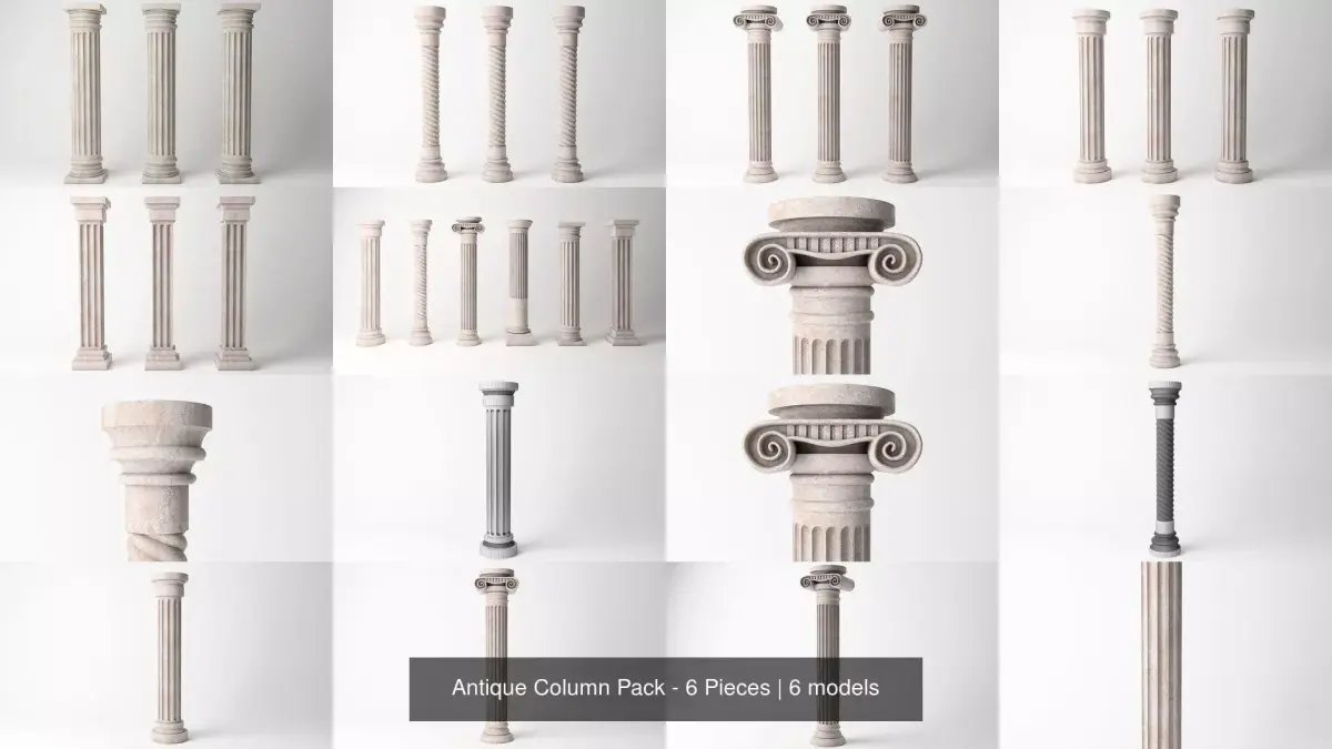 High guality 3D model of antique column PACK (6 pieces).