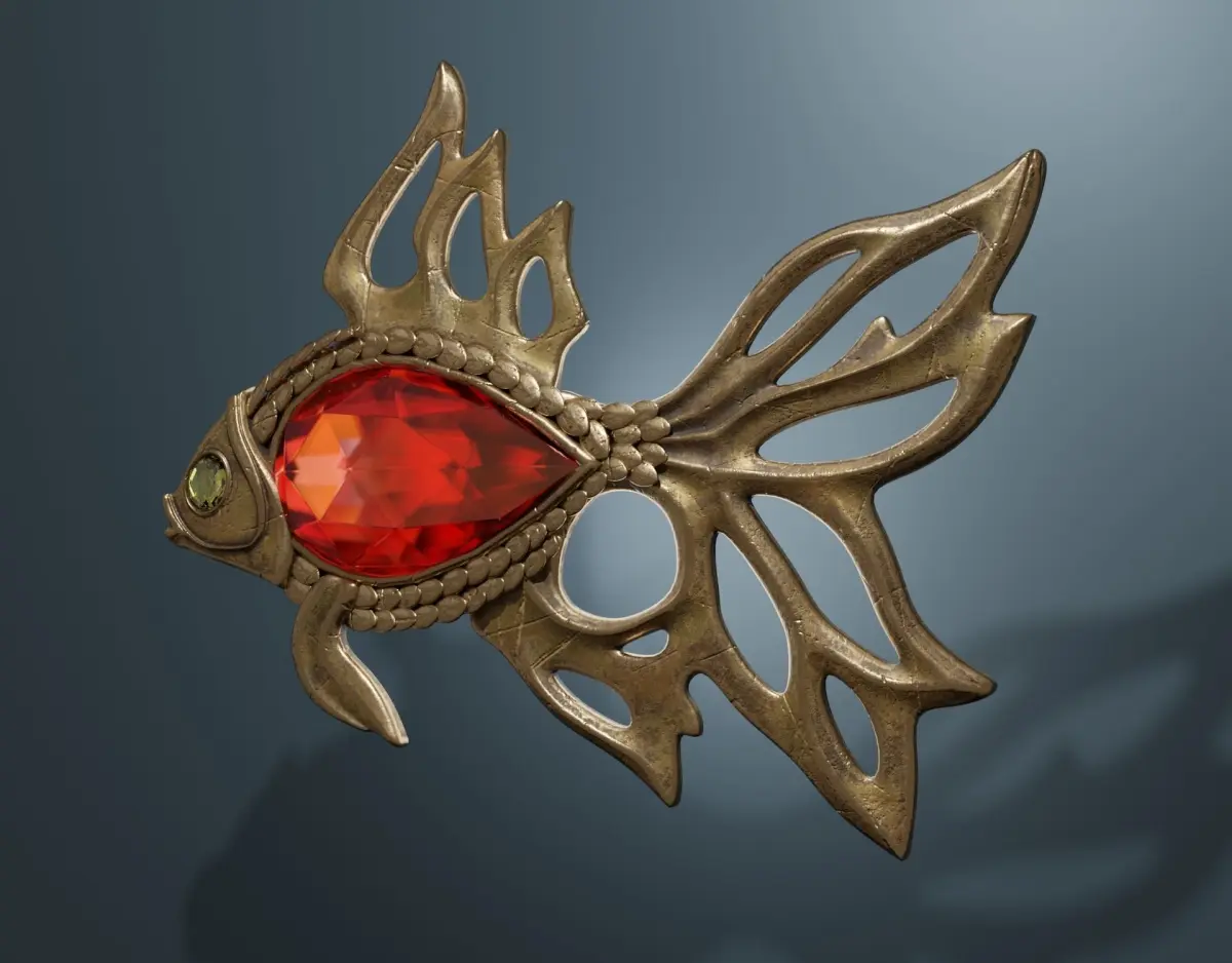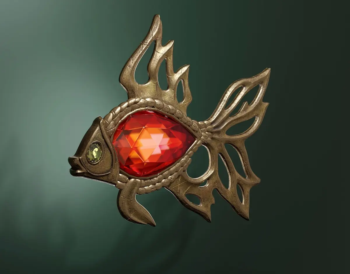 Antique copper brooch with jewels in the shape of a fish. The model consists of three objects: a fish and two stones of different shapes and colors. (objects are not related to each other) Textures are made in substance painter (2048x2048) and packed in a zip archive.