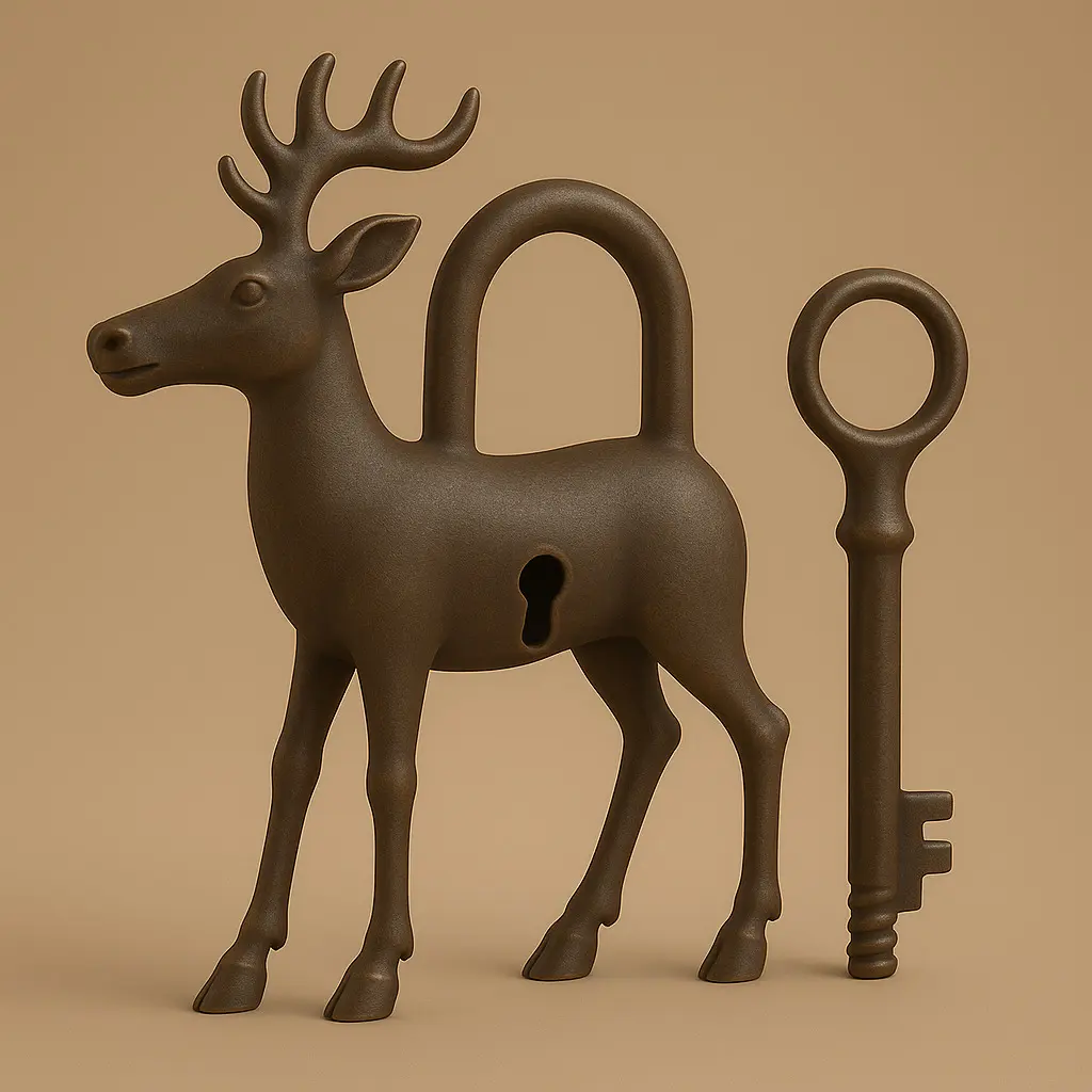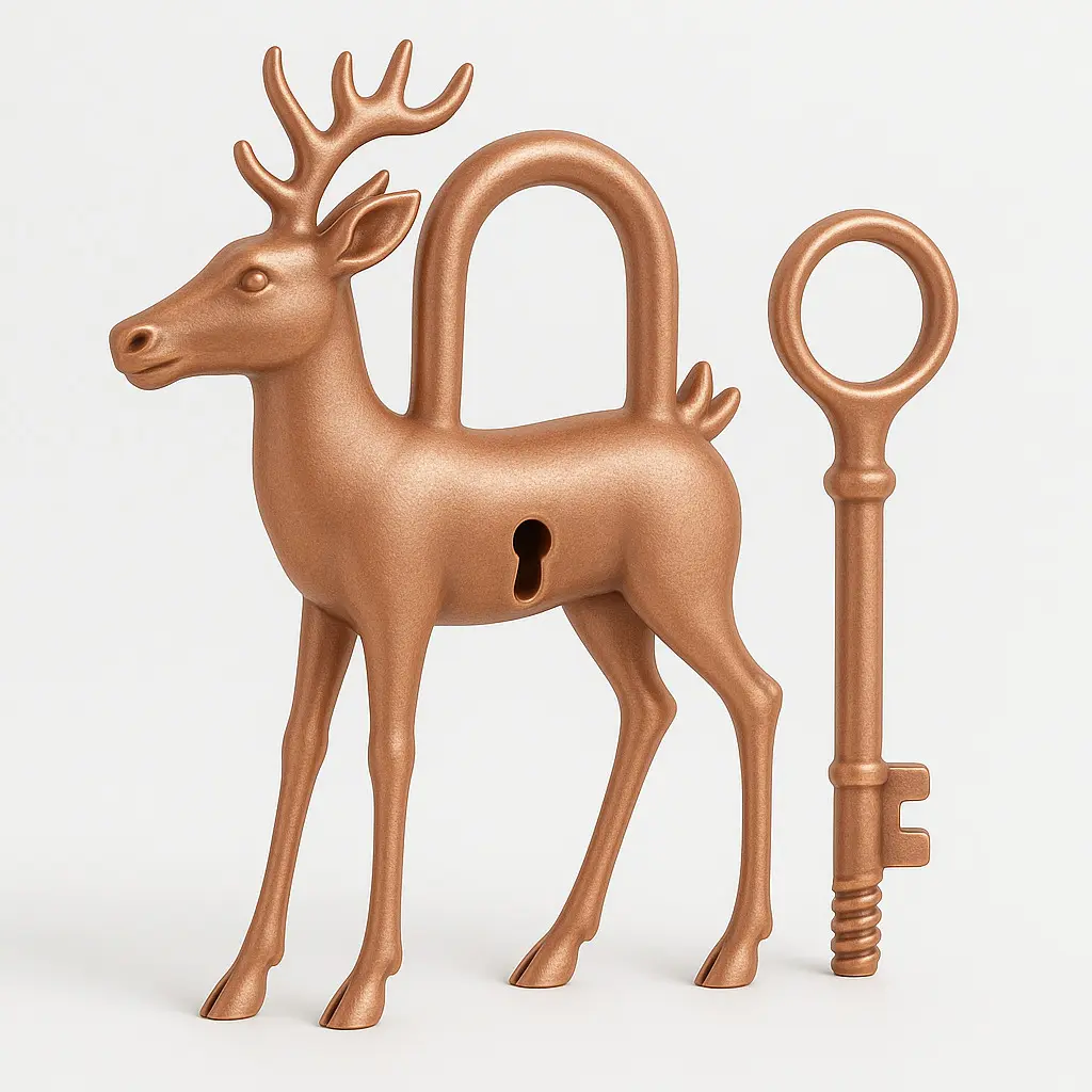 This unique 3D model features an antique-style padlock in the shape of a deer, complete with a beautifully sculpted matching key. Inspired by historic hand-forged bronze locks, this model blends artistry, function, and vintage aesthetics—perfect for collectors, designers, and enthusiasts of traditional craftsmanship.