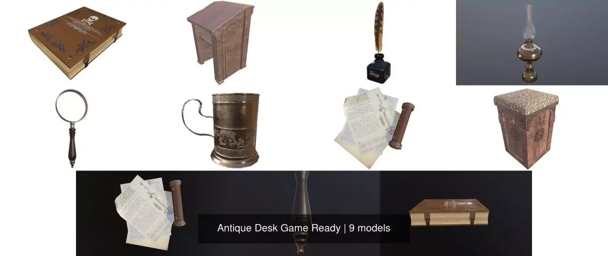 Real-Time,Game Ready, Antique Desk. Display images were rendered in Marmoset Toolbag.