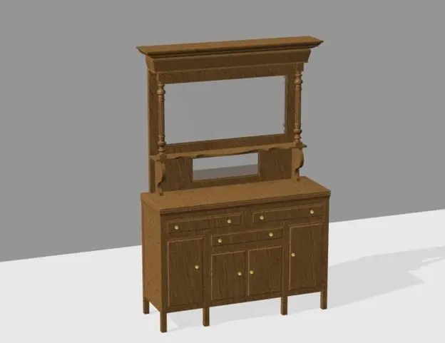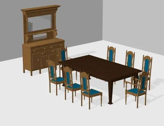 Set contains a sideboard with mirror, eight chairs and a dining table.