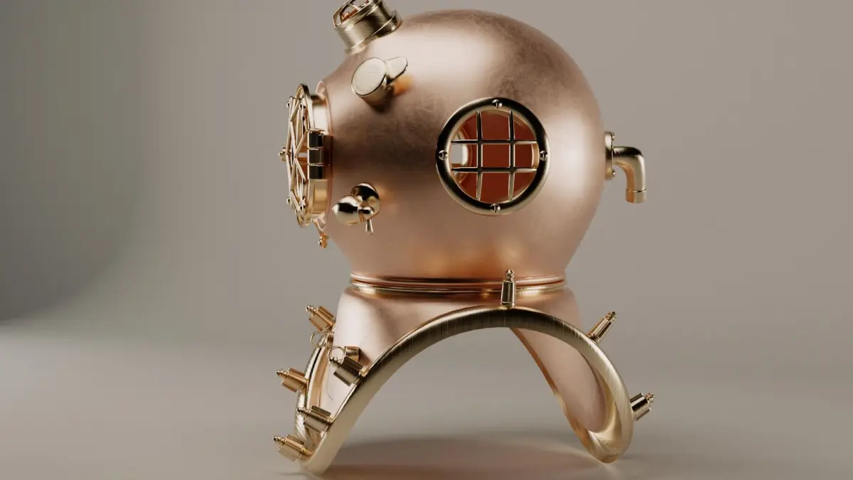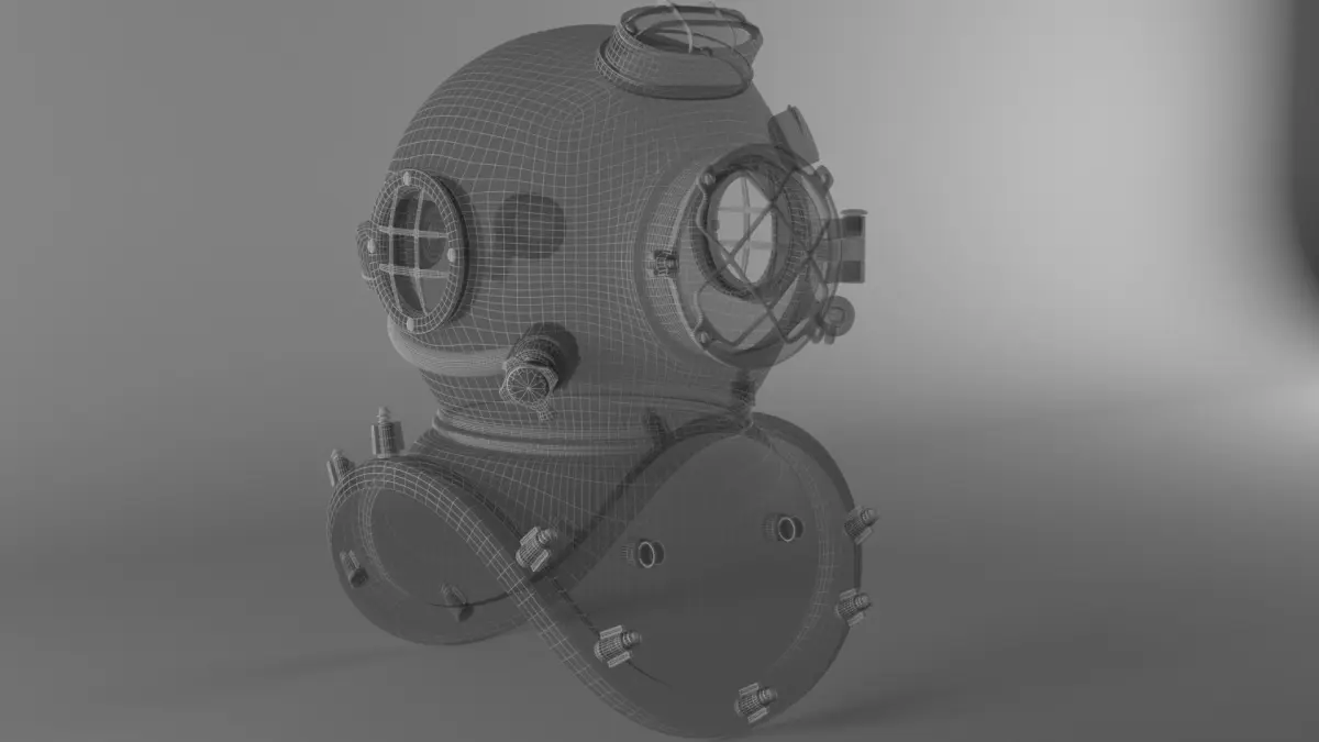 model of a deep sea diver helmet maded in 3ds Max and rendered with Corona. this is twelve-bolt US NAVY mark V brass and copper diver's helmet