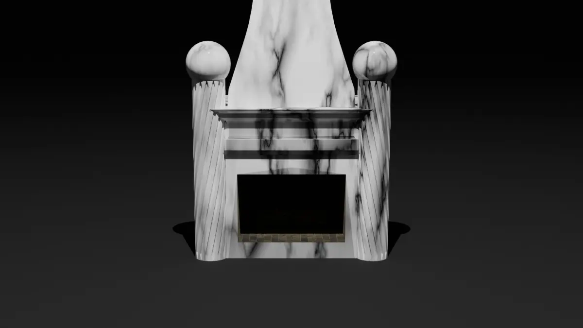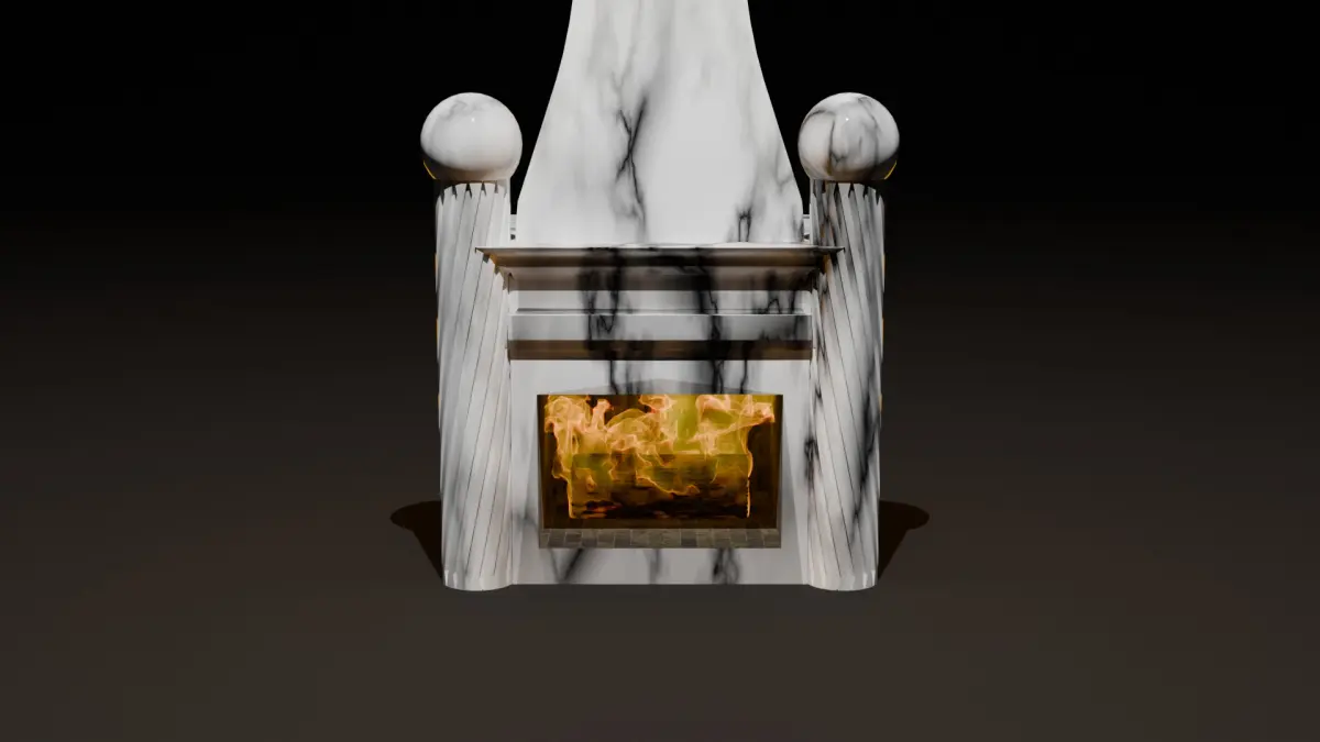 A simple fireplace with a carved mantel. A log is already provided. The fireplace and log both have materials added to create texture. Ready to place in a scene. Made to scale.
