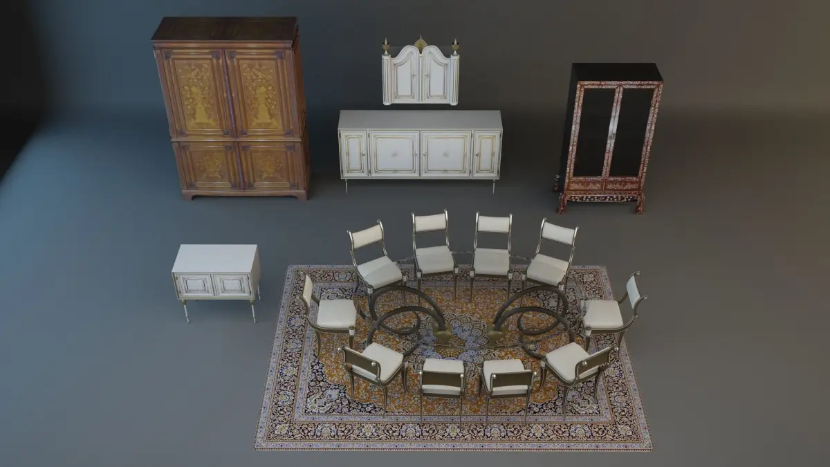 A DETAILED 3D MODEL SET OF ANTIQUE FURNITURE: