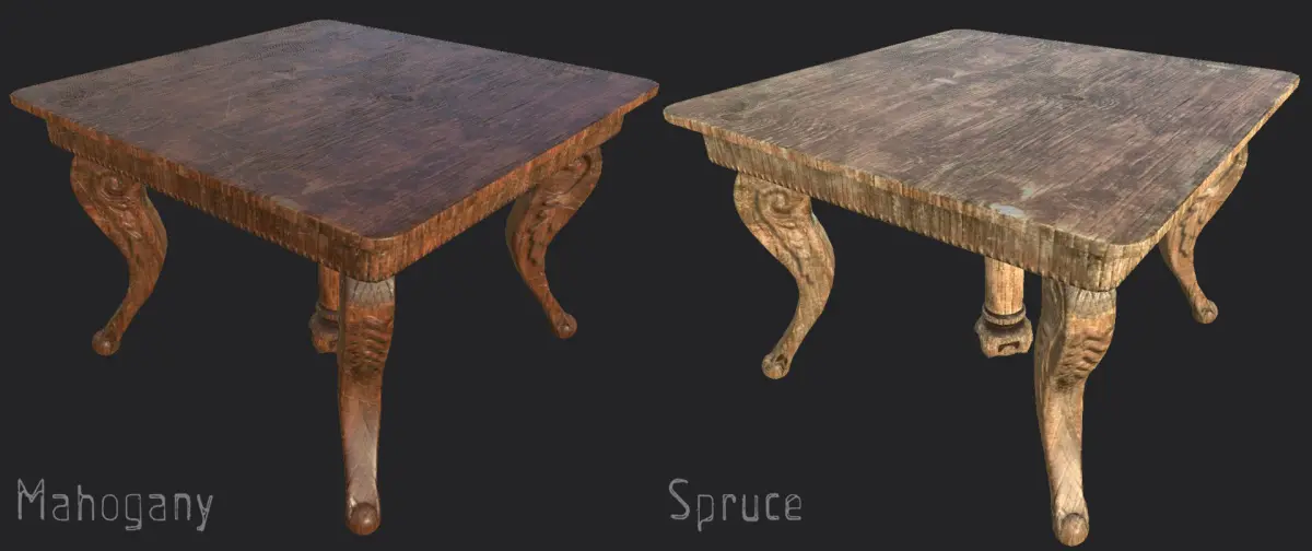 -Table (Mahogany clean/worn, spruce clean/worn)