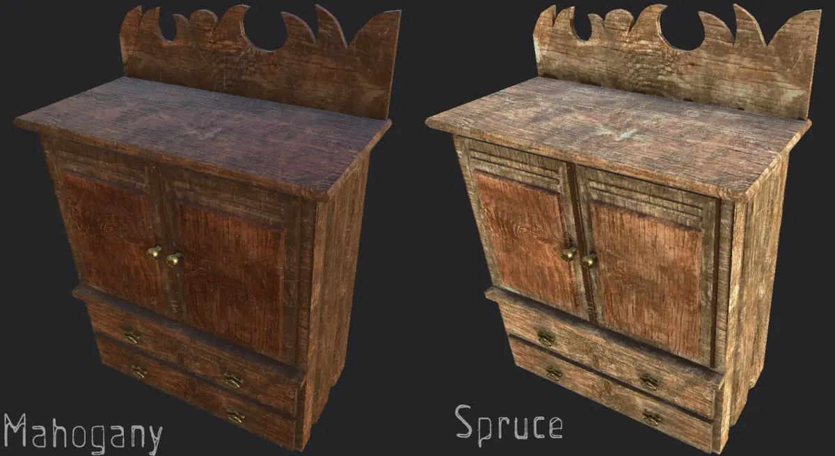 -Drawer (Mahogany clean/worn, spruce clean/worn)