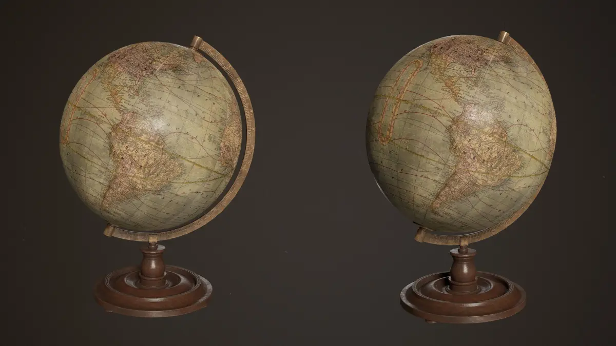An antique globe. This model is low poly and game ready.