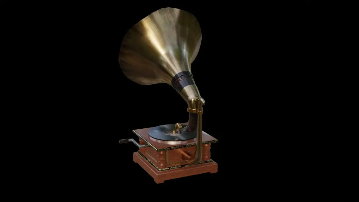 A 3D model Gramophone from roughly the 1920's. Ideal for taking on picnics and other pleasant escusions where a little vintage 78rpm ambiance is required.The model has/is;-