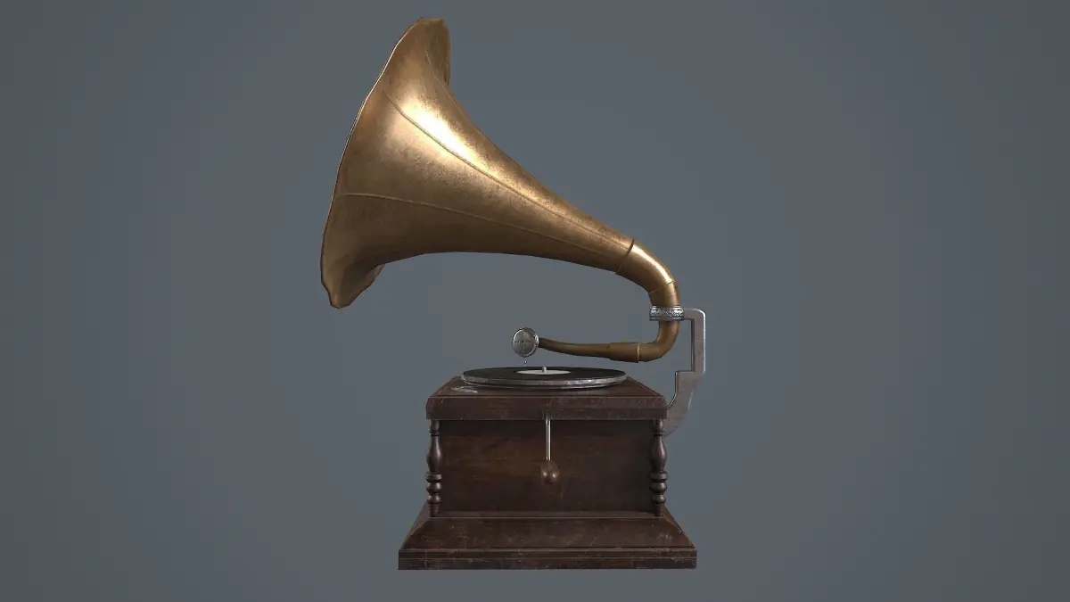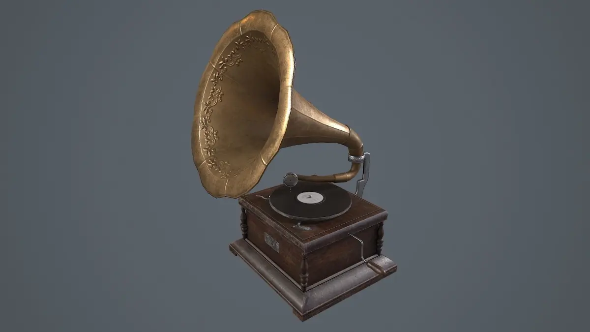 PBR gameready asset of antique gramophone.