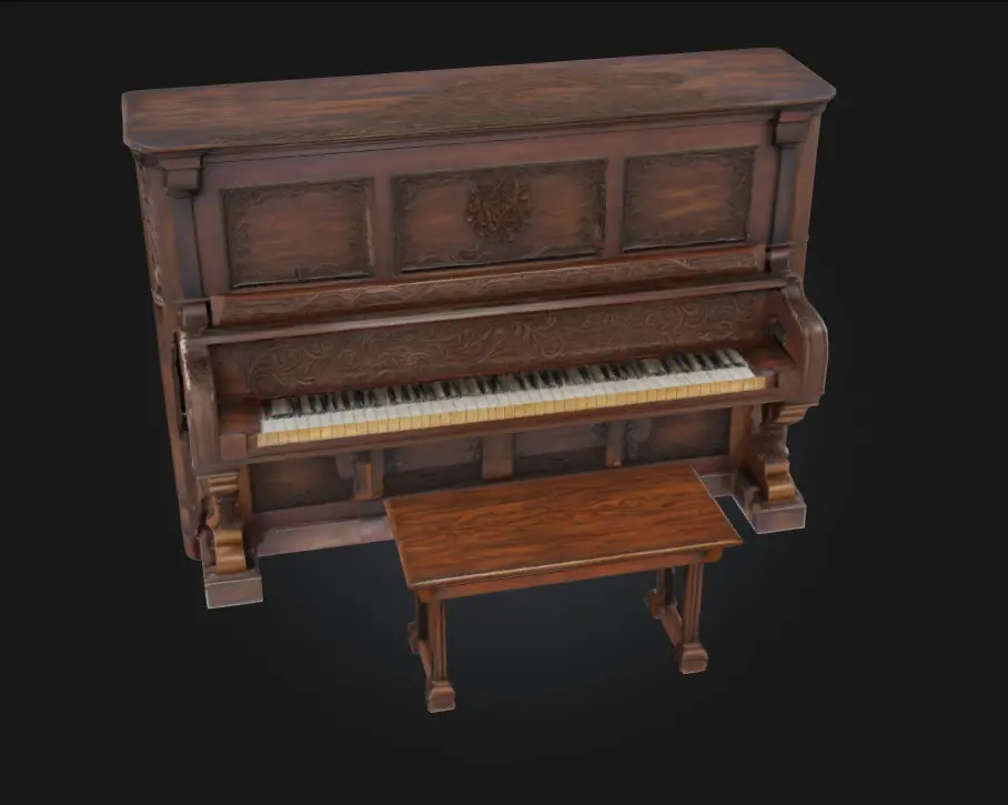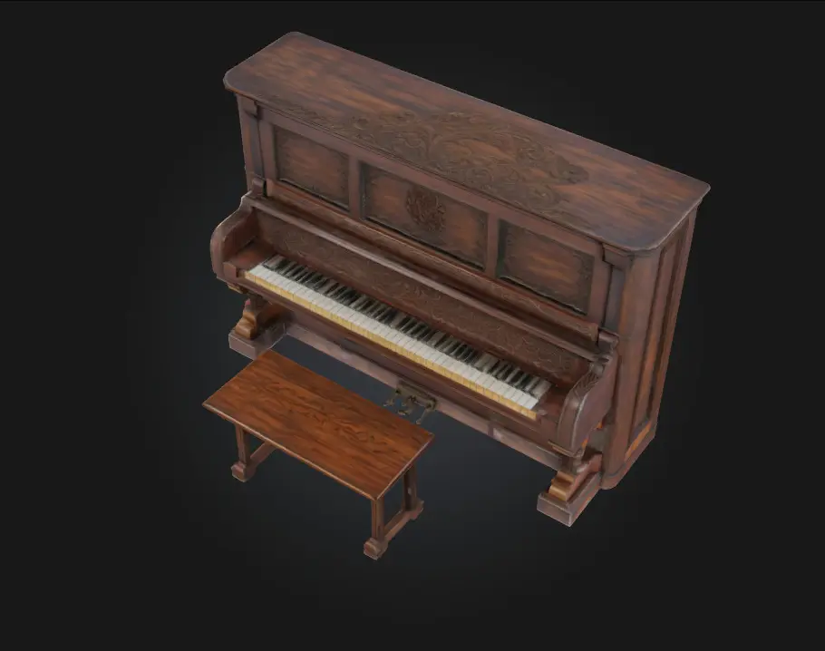The Antique Harmony model captures the timeless grace of vintage craftsmanship, ideal for classic interiors, historical animations, or refined dioramas. With rich details and aged textures, this piece adds sophistication and narrative depth to any scene.