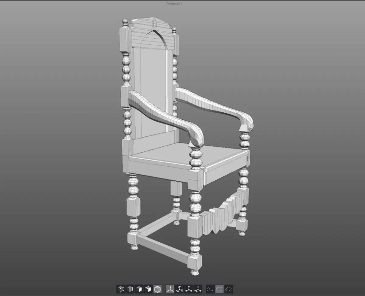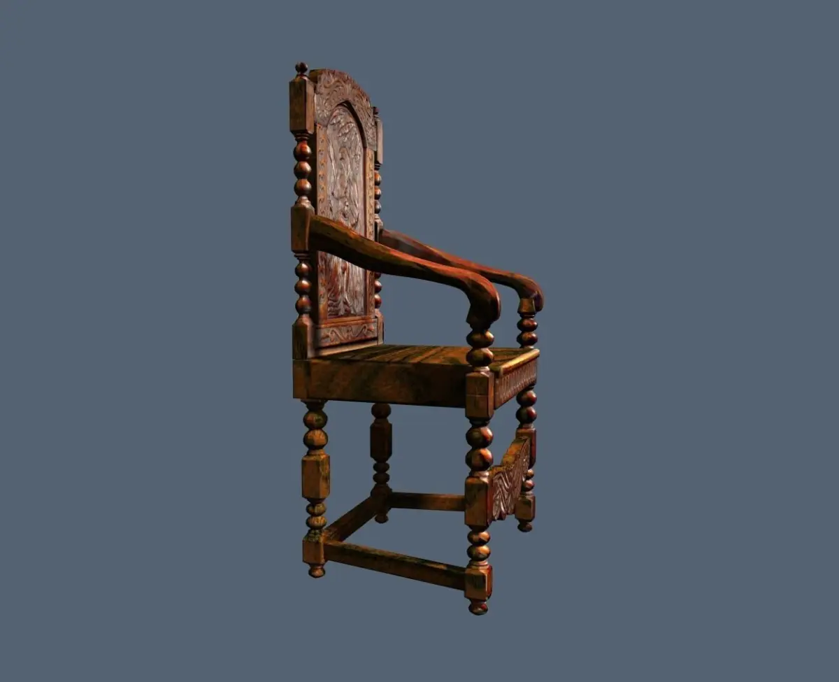 This Antique Jacobean Armchair is a mid-range-poly model, based on a real-world, superbly hand-carved specimen.