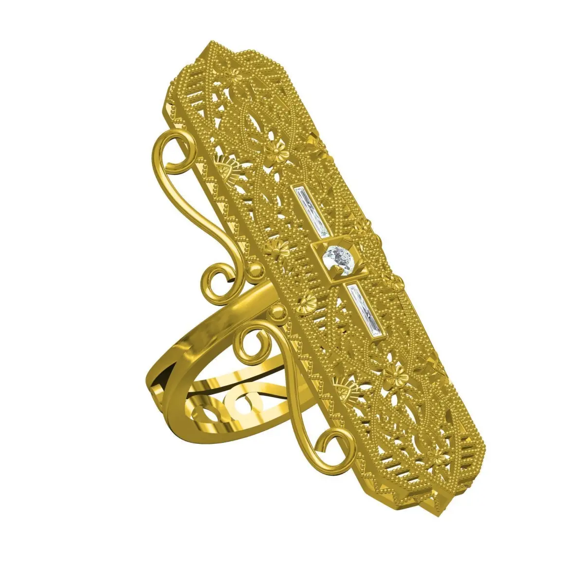 Antique Long Top Filigree Art Deco Ring