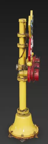 The Overall Concept This asset is a rare, early 20th-century traffic device known as a semaphore signal. It looks like a cross between a street light and a railroad crossing sign, making it perfect for historical city scenes or steampunk environments.