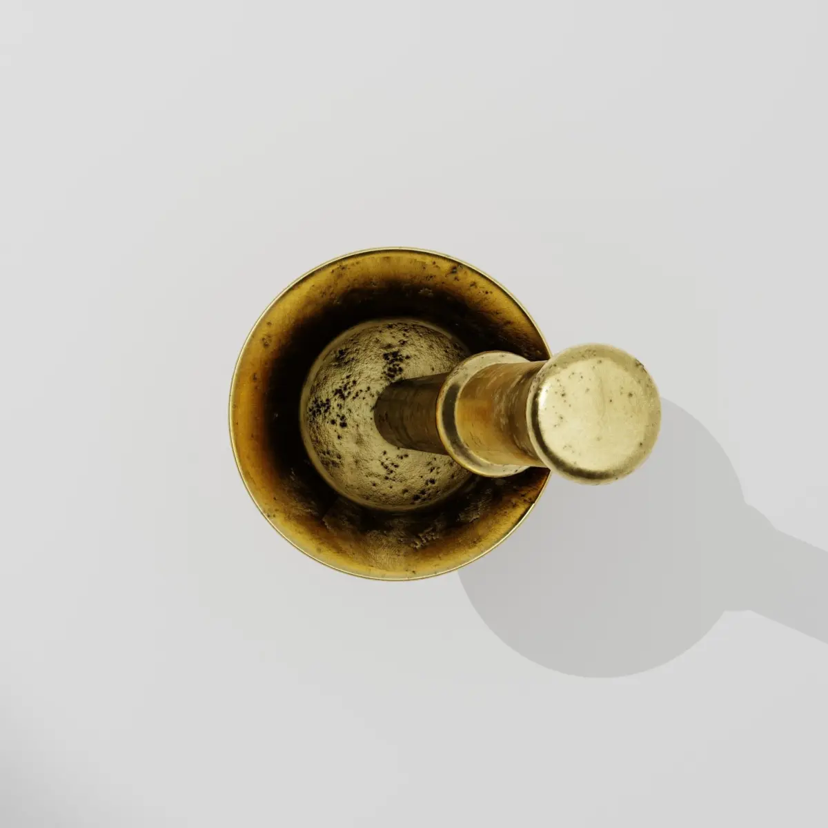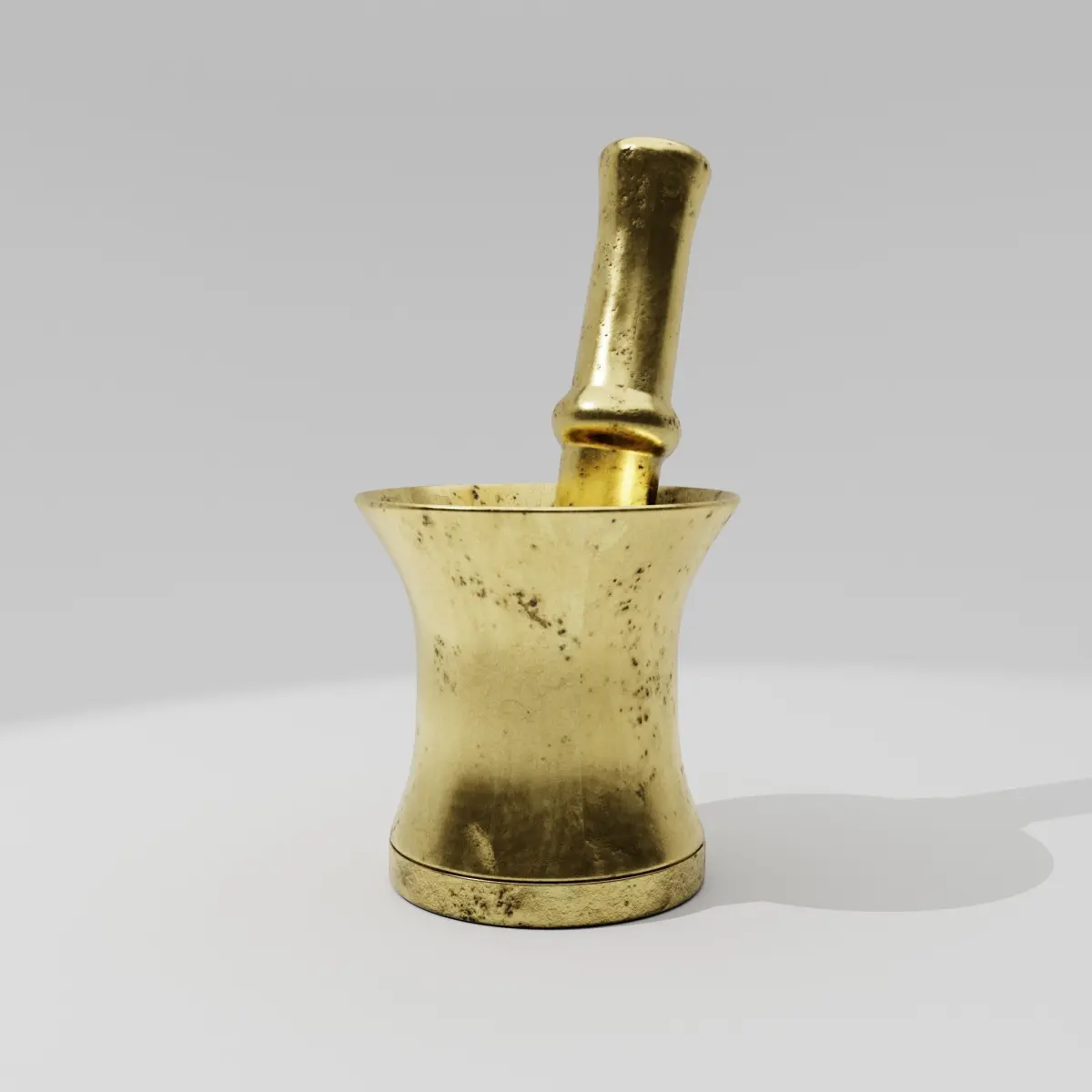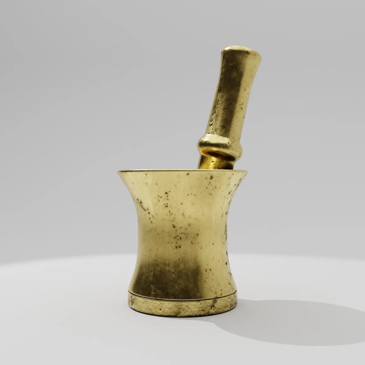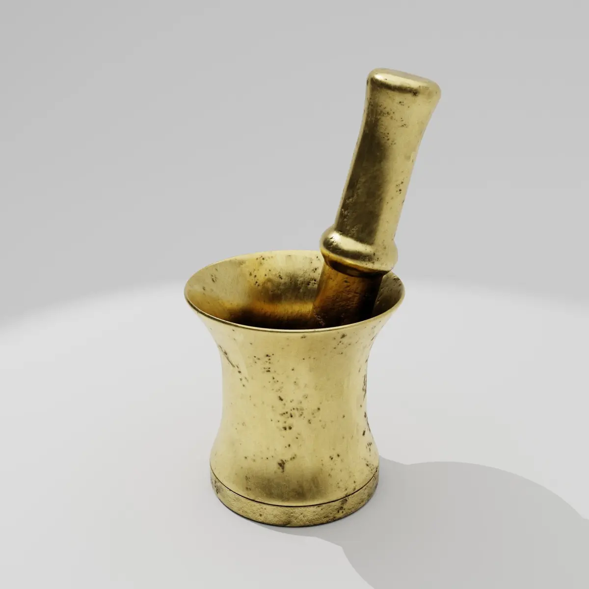 This 3D model of an antique metallic mortar and pestle captures the timeless charm and functionality of traditional kitchen tools. Designed with intricate details, realistic wear, and a polished metallic finish, this model is perfect for use in historical visualizations, kitchen scenes, or as a decorative element in various projects.