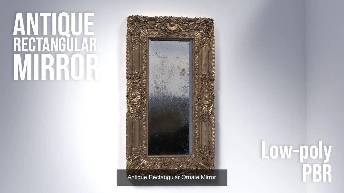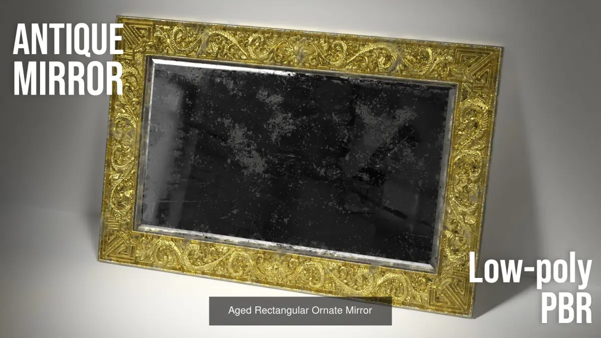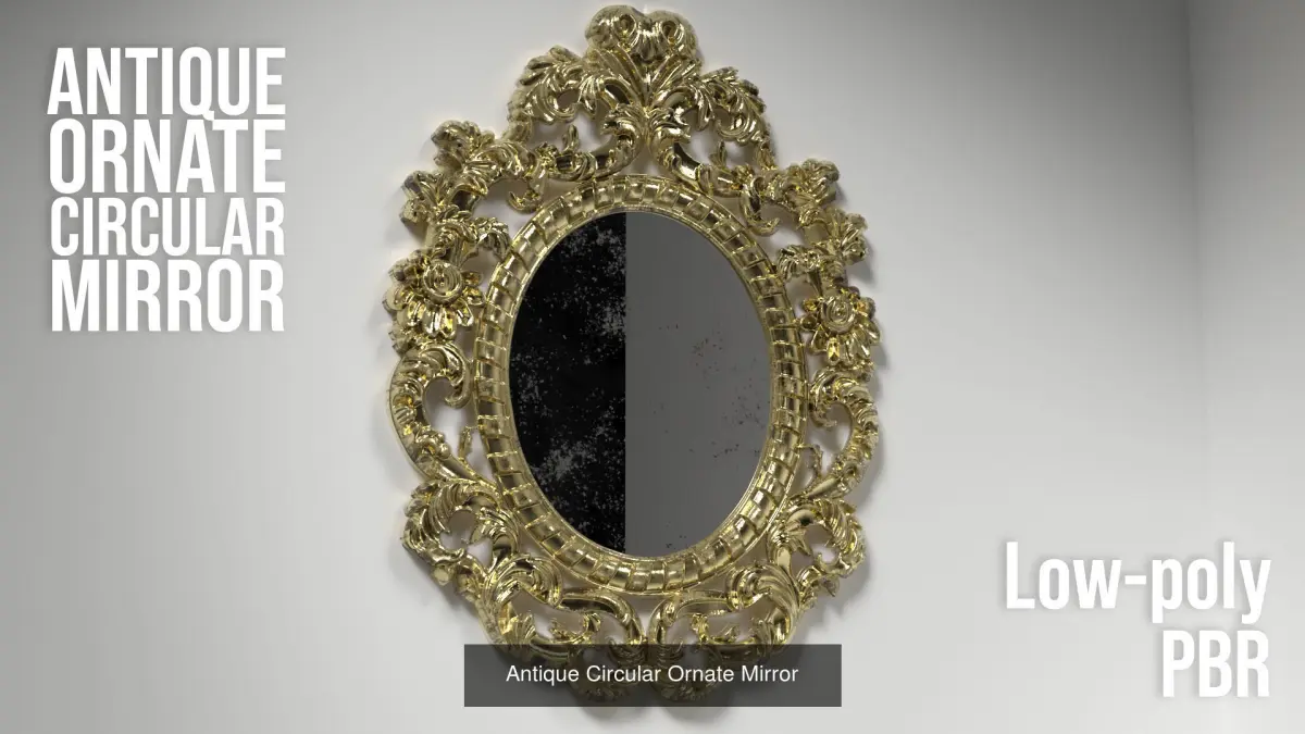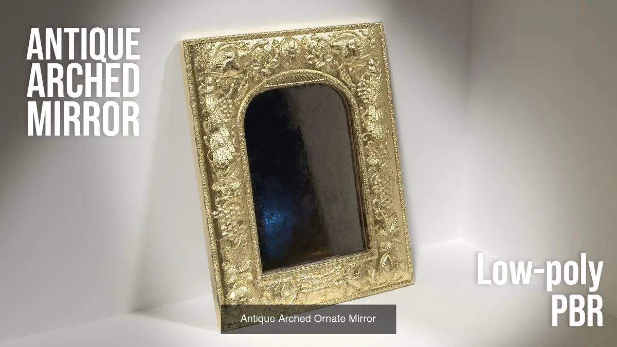 A collection of antique ornate mirrors. Great for Arch Viz rendering! All have PBR materials and low-poly. The included Displacement maps have been used to create tsurface details. Please see individual items for more specs.