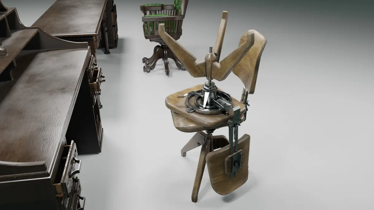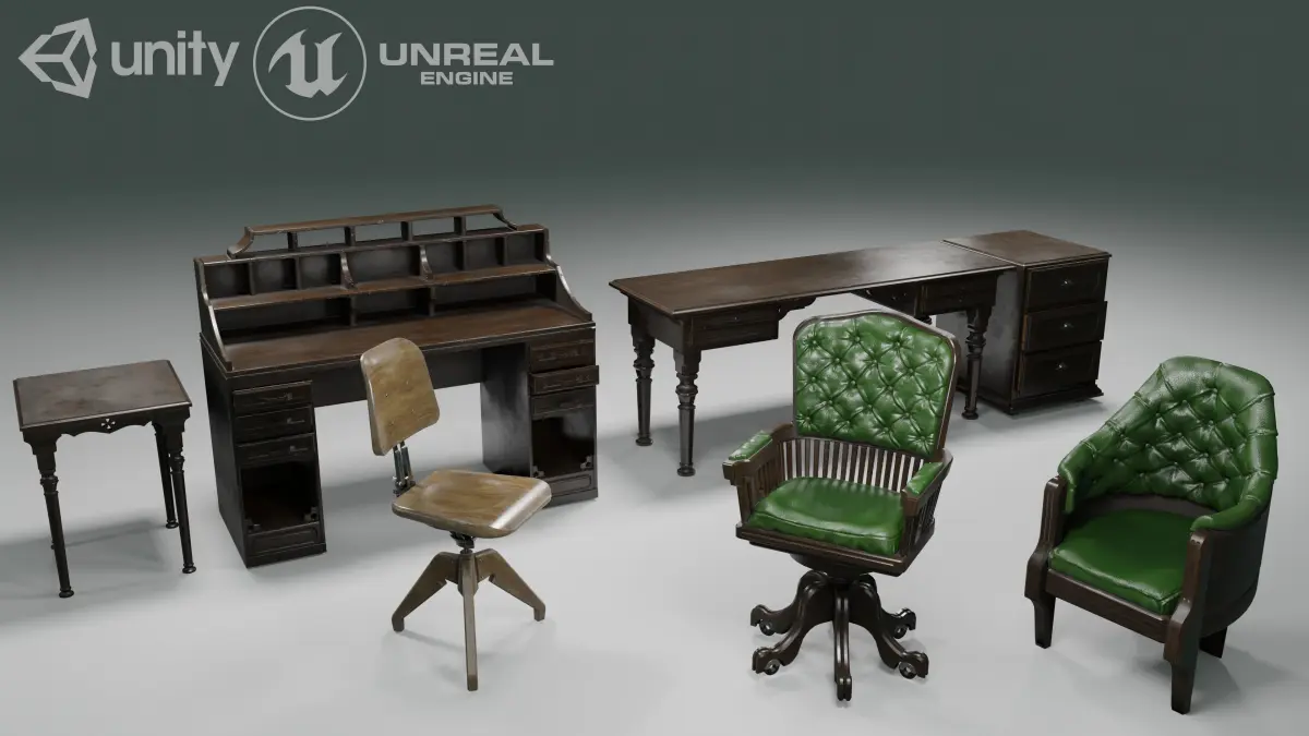 A Low-poly 3D model of a pack of office furnitures made in Blender 2.91